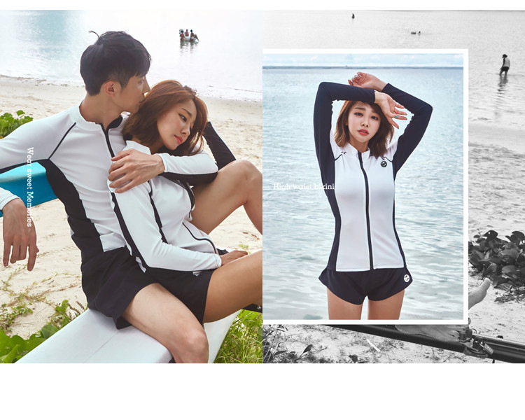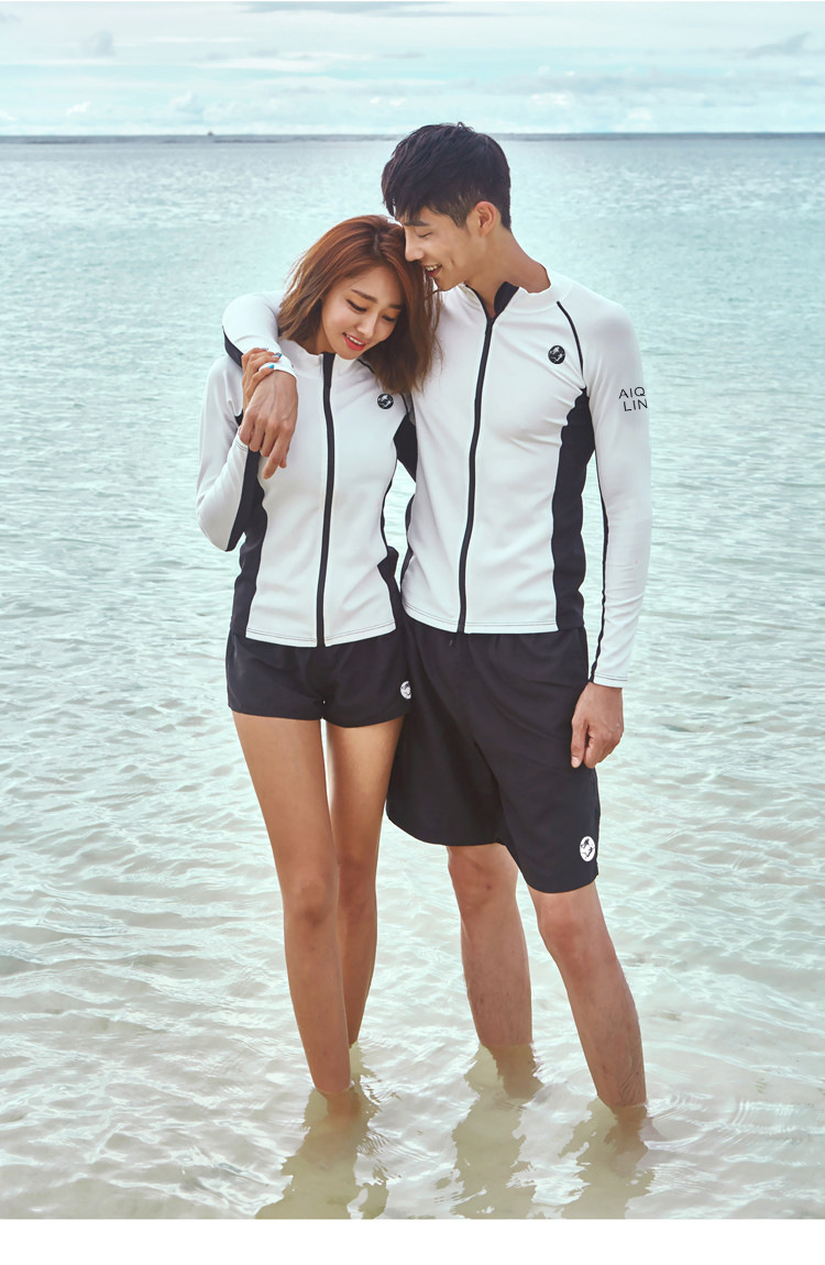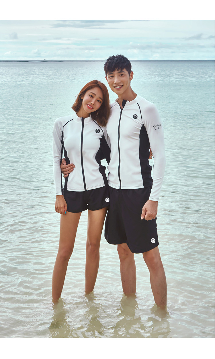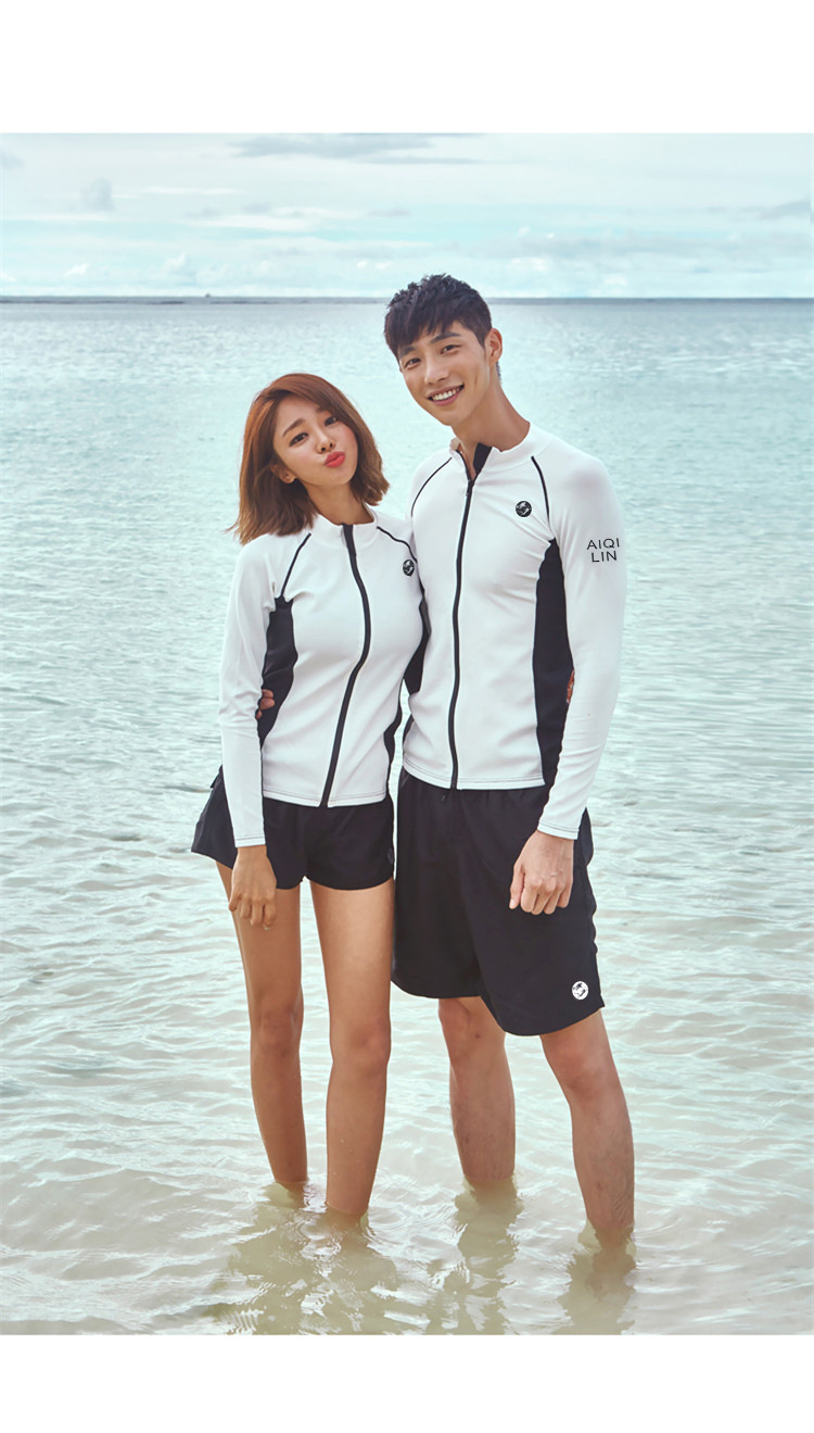 새로운 한국 패션 분할 다이빙 세트 지퍼 커플 남성과 여성 해파리 수영복 긴 소매 서핑스토어 가기