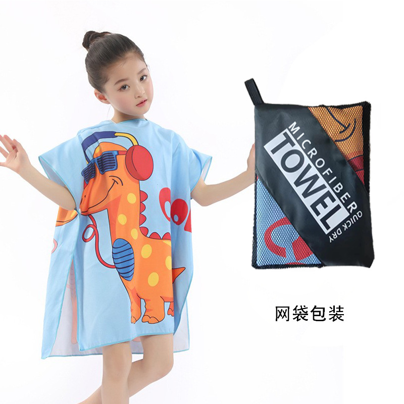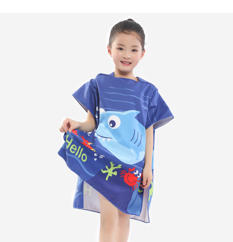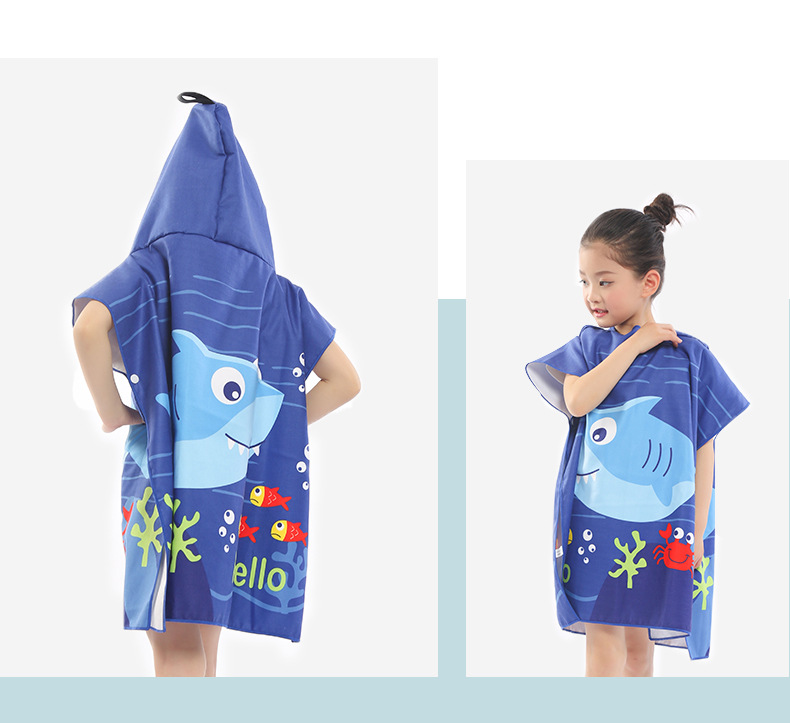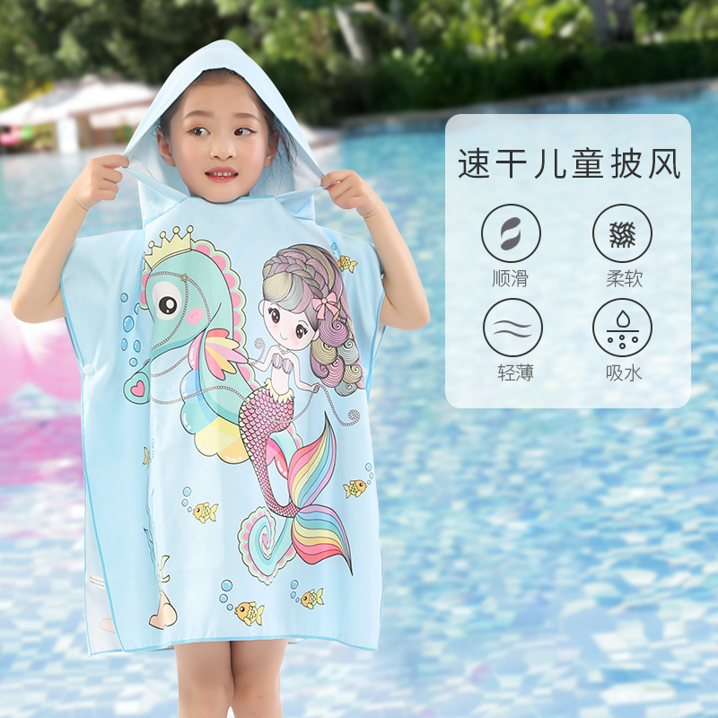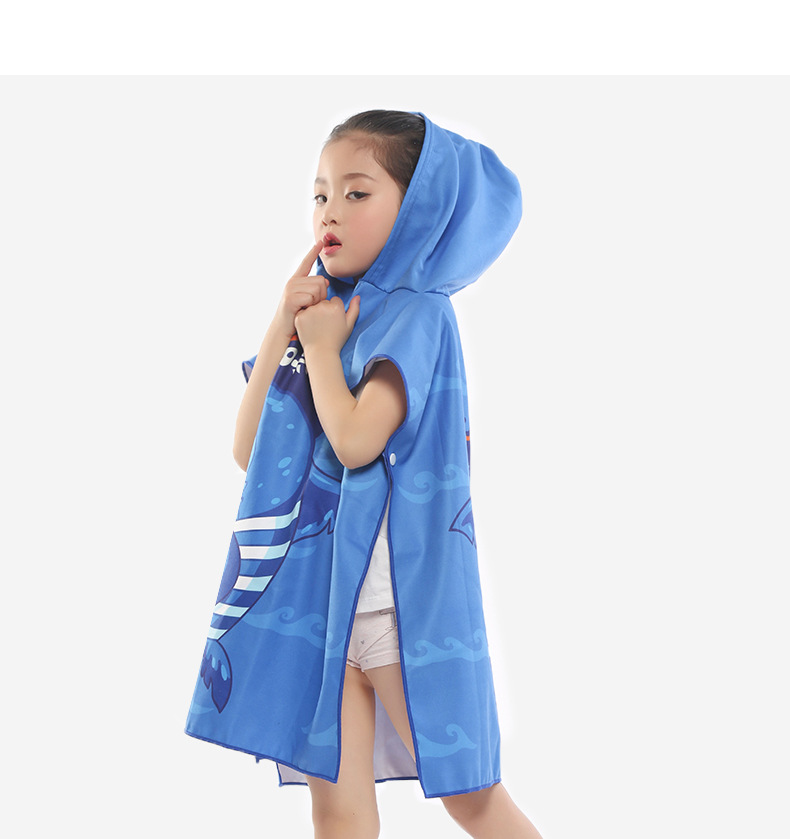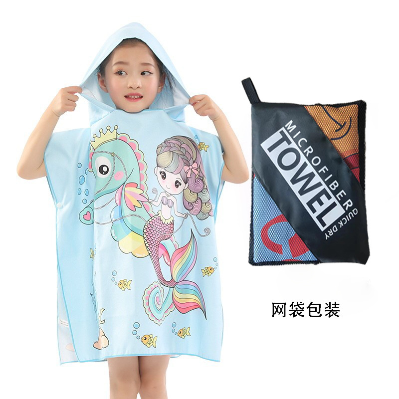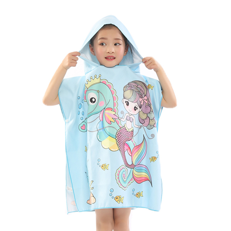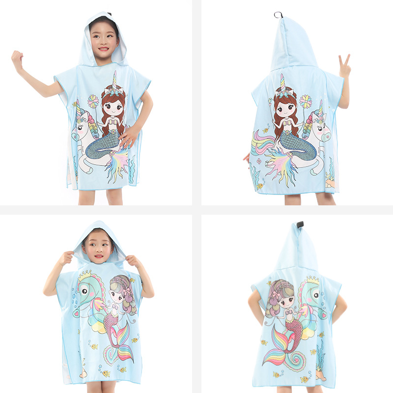 어린이용 속건성 양면 벨벳 망토형 목욕 타월 아마존 프린트 만화 캐릭터 후드 비치 타월 수영 타월