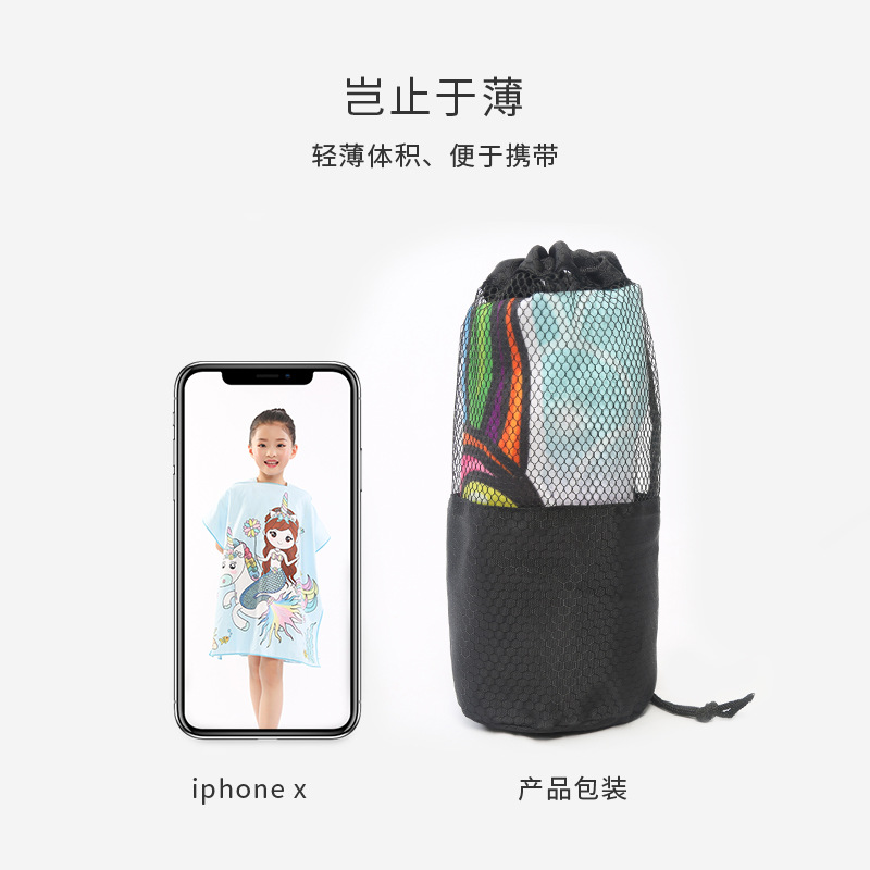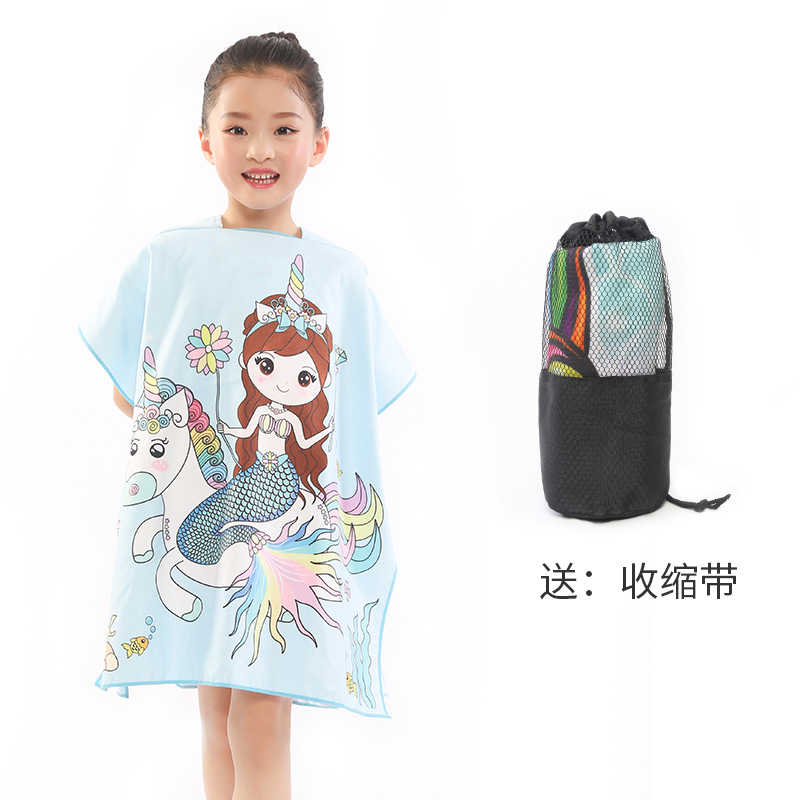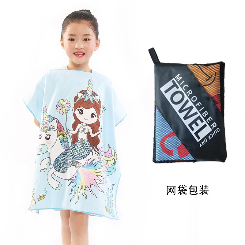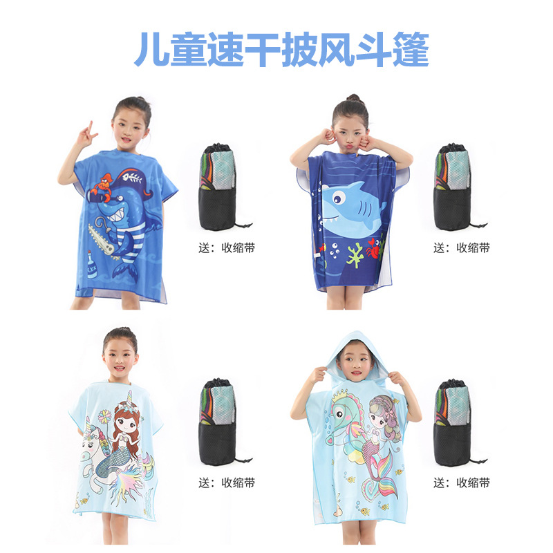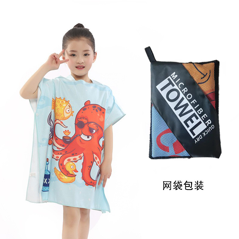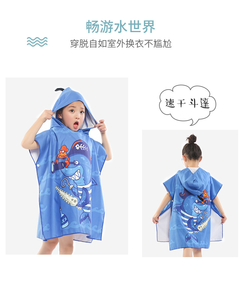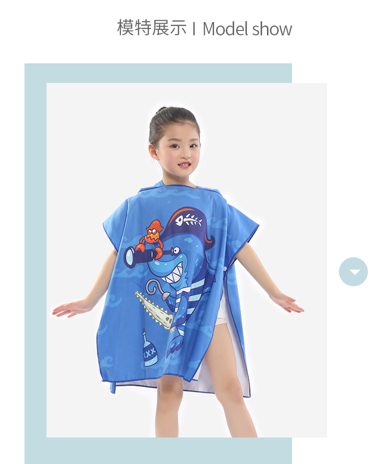 어린이용 속건성 양면 벨벳 망토형 목욕 타월 아마존 프린트 만화 캐릭터 후드 비치 타월 수영 타월