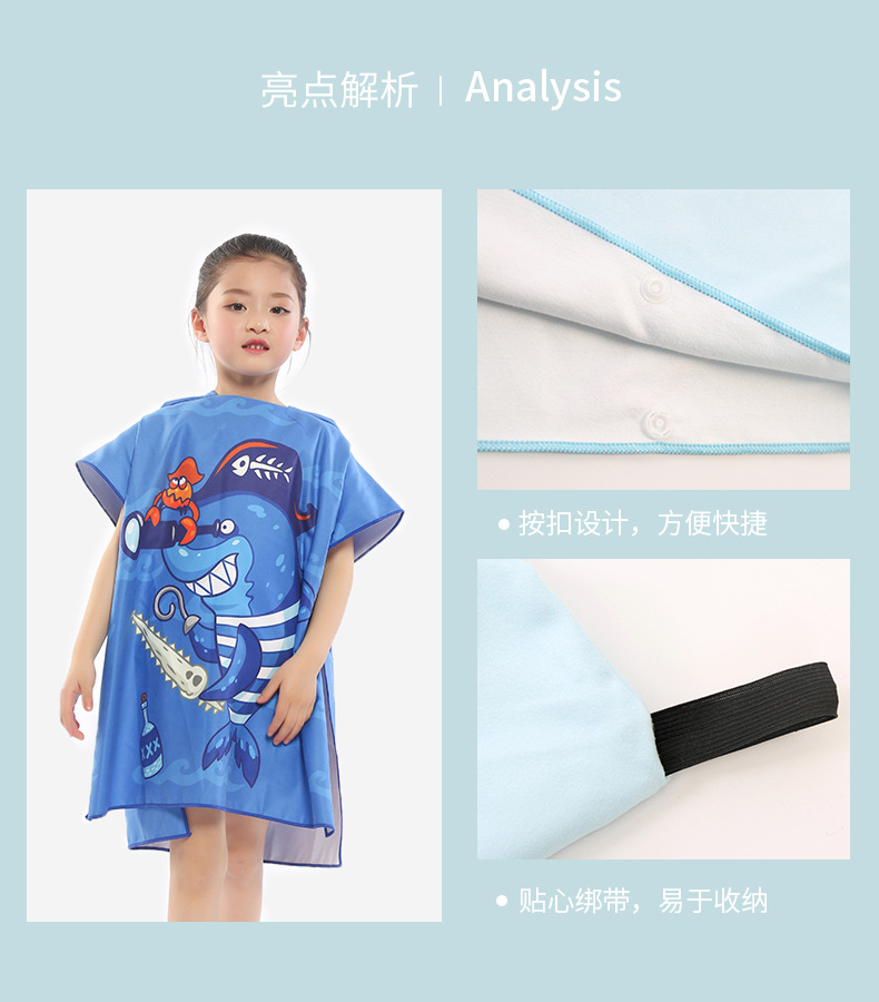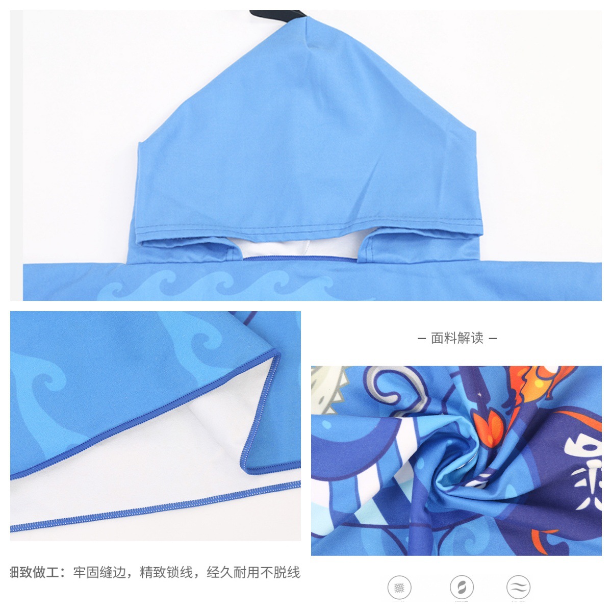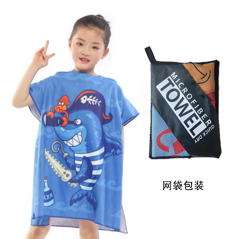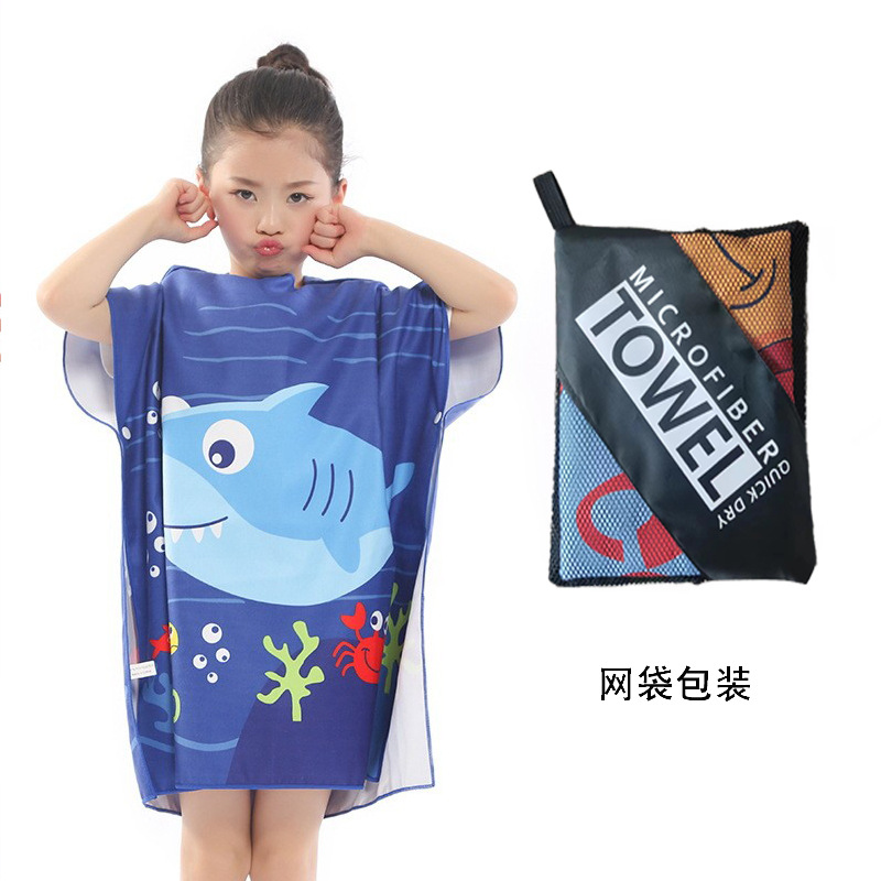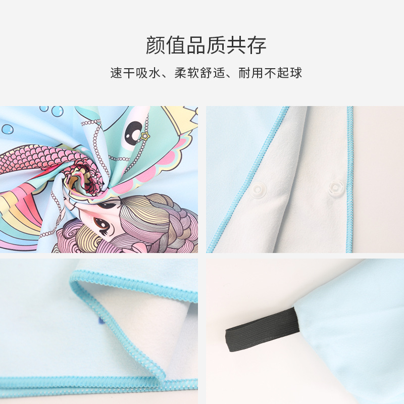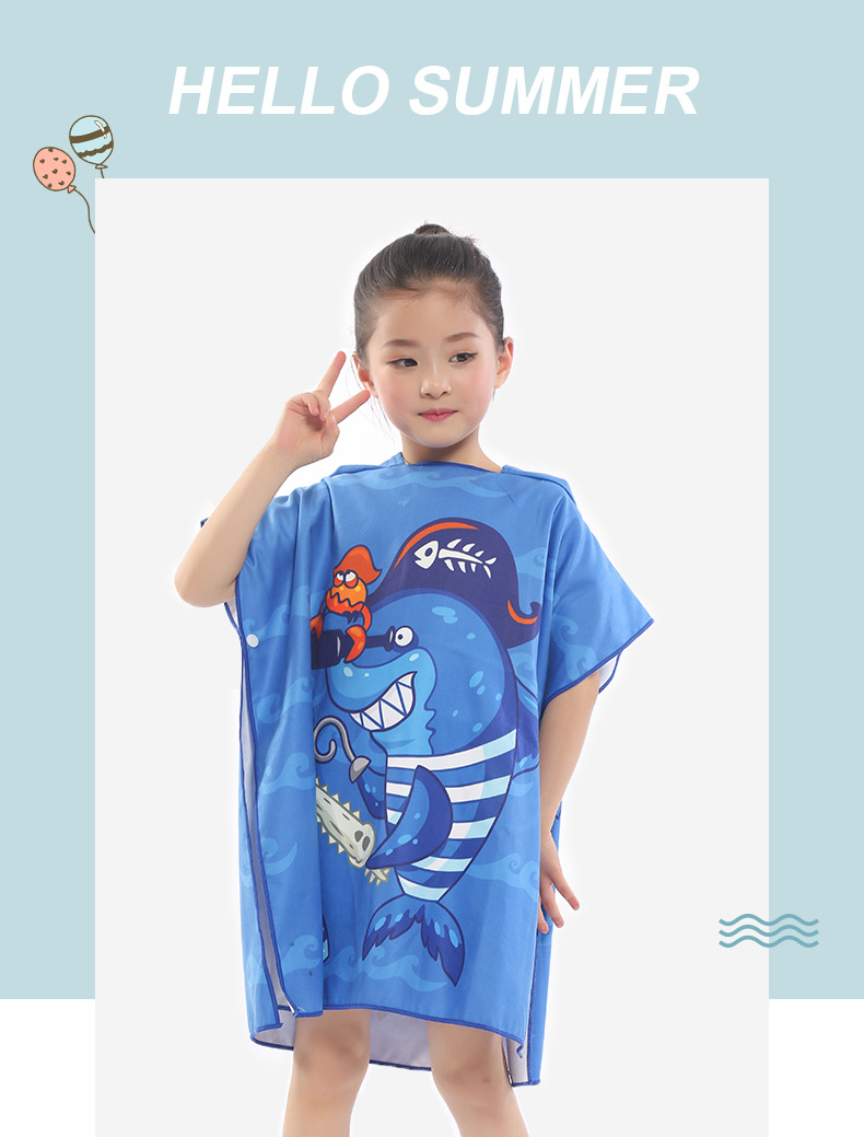 어린이용 속건성 양면 벨벳 망토형 목욕 타월 아마존 프린트 만화 캐릭터 후드 비치 타월 수영 타월