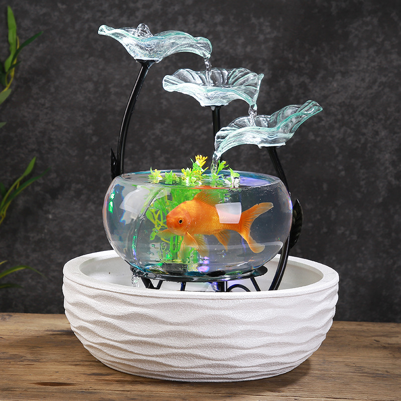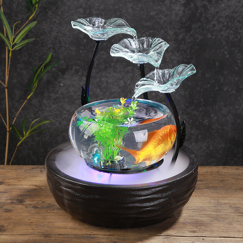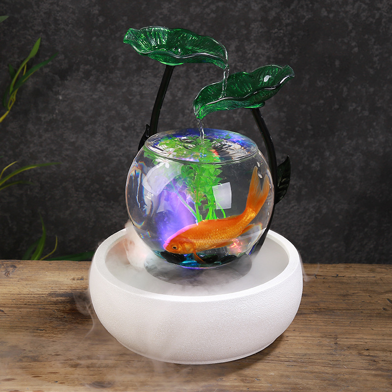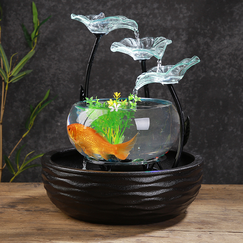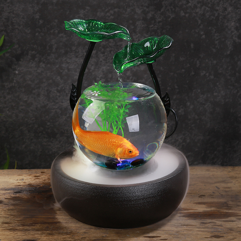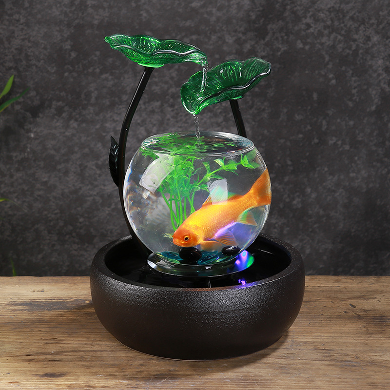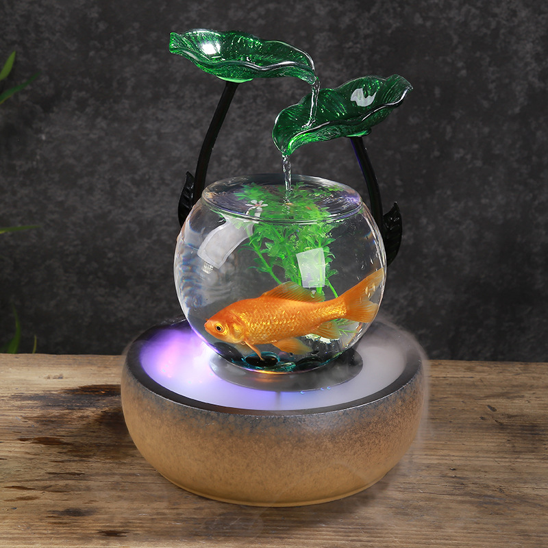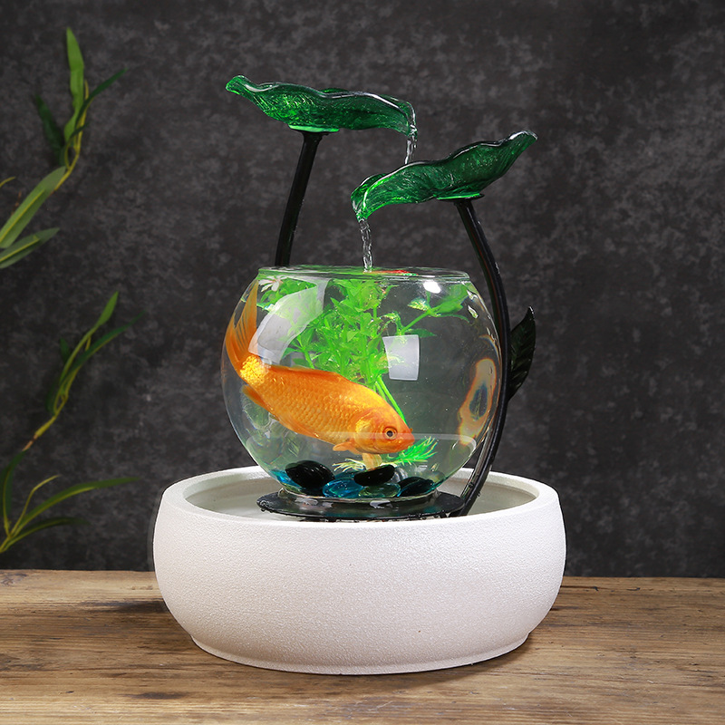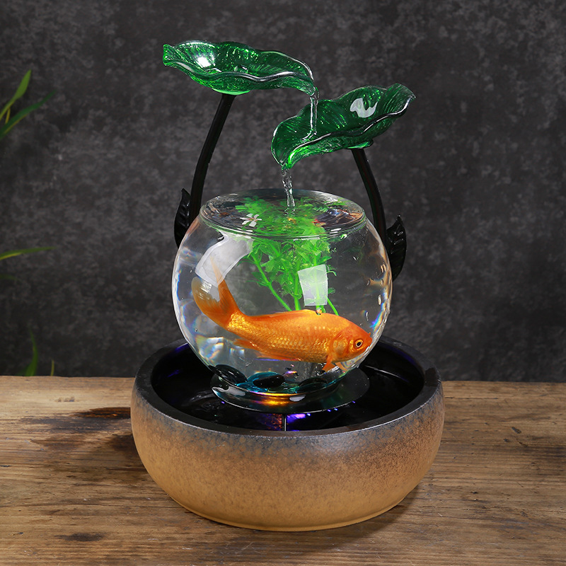 세라믹 흐름 장식품 분수 유리 어항 복 만들기 풍수 바퀴 거실 홈 오피스 생일 선물 TV 캐비닛