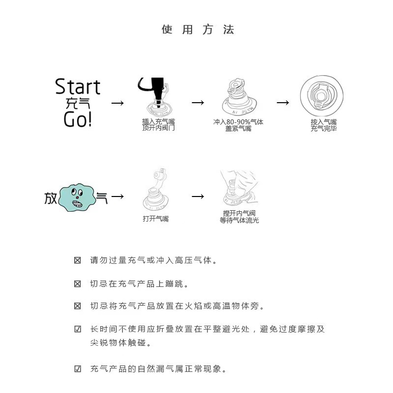充气产品都有一定的漏气率的,如有漏气情况 ,是不好退换的哦!介意的请慎拍!