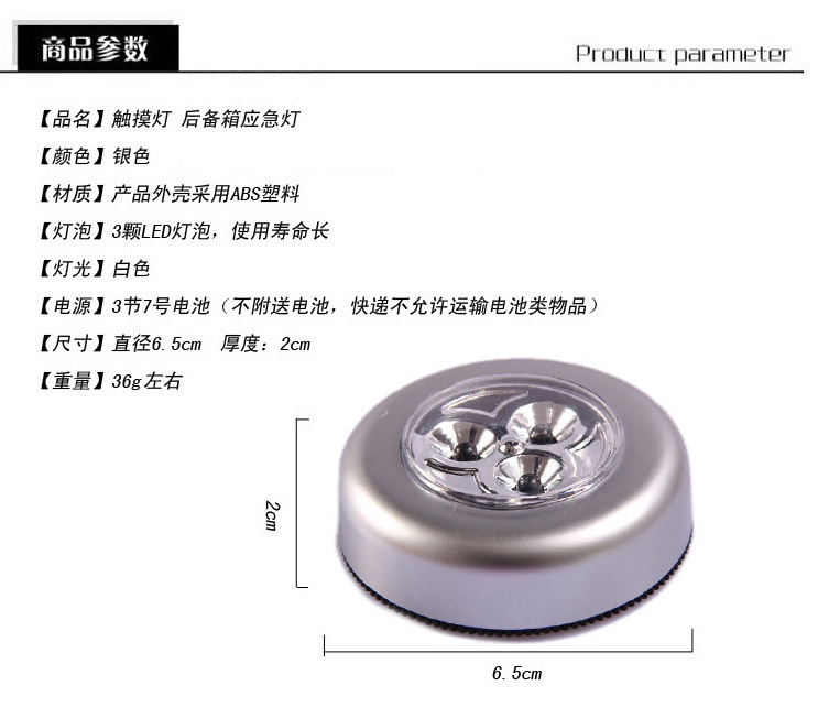 자동차 독서 등 트렁크 터치 라이트 3LED 야간 조명 크리 에이 티브 침실 머리맡 찬장 옷장 촬영 4 조명