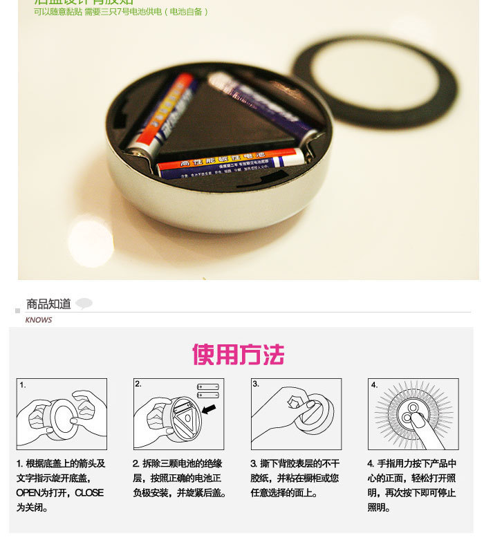 자동차 독서 등 트렁크 터치 라이트 3LED 야간 조명 크리 에이 티브 침실 머리맡 찬장 옷장 촬영 4 조명스토어 가기