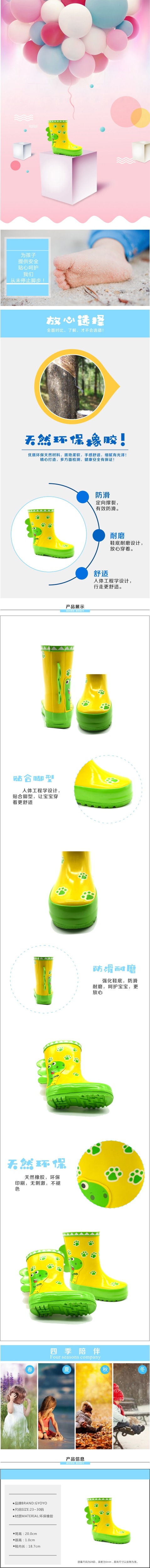 맞춤형 어린이 장화, 작은 공룡 장화, 어린이 공룡 발자국, 대비 색상 아기 미끄럼 방지 및 내마모성 장화스토어 가기