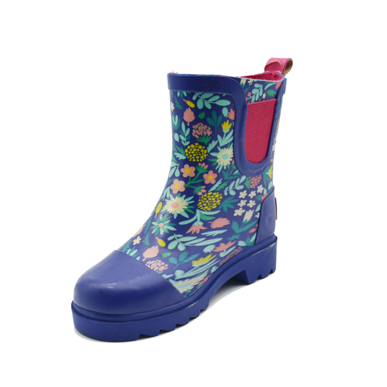 블루 레드 꽃무늬 탄성 어린이 사계절 컬러 블록 장화 워터 슈즈 장화