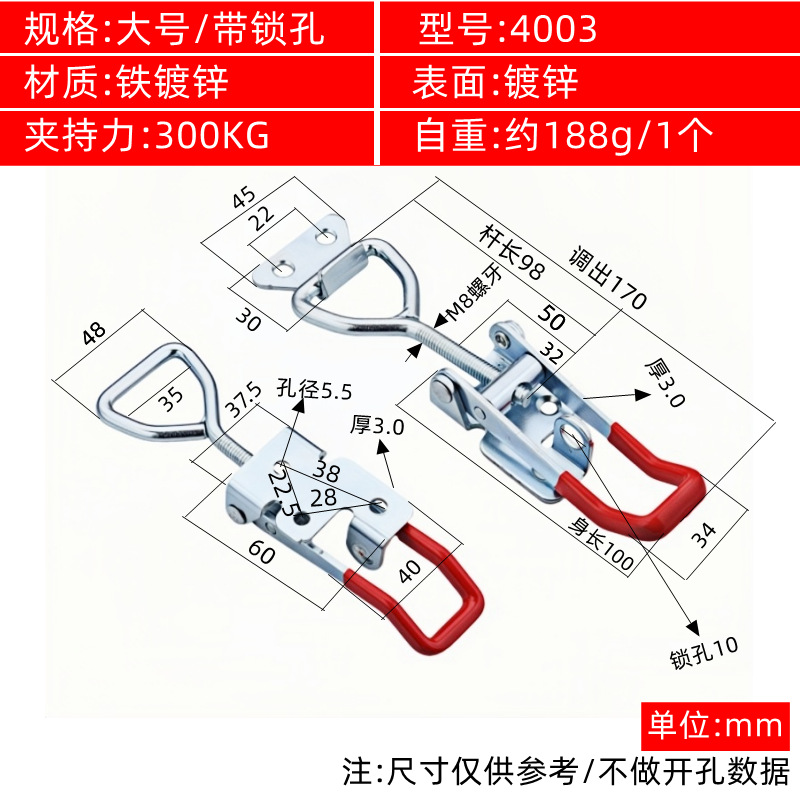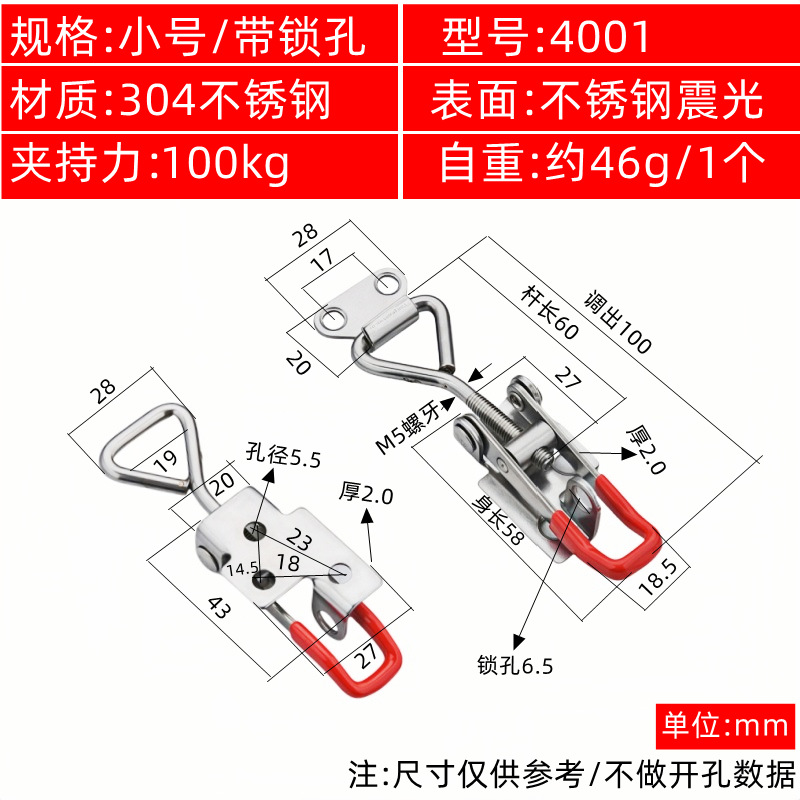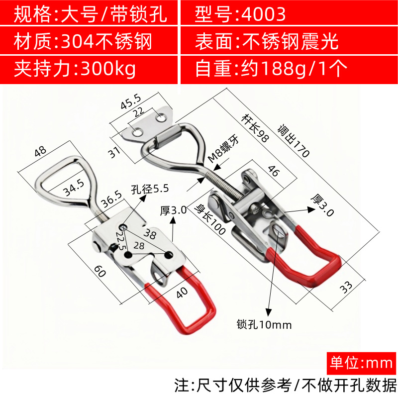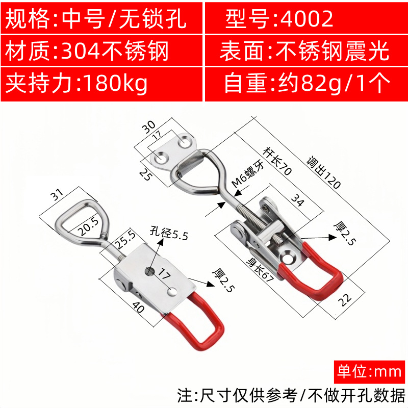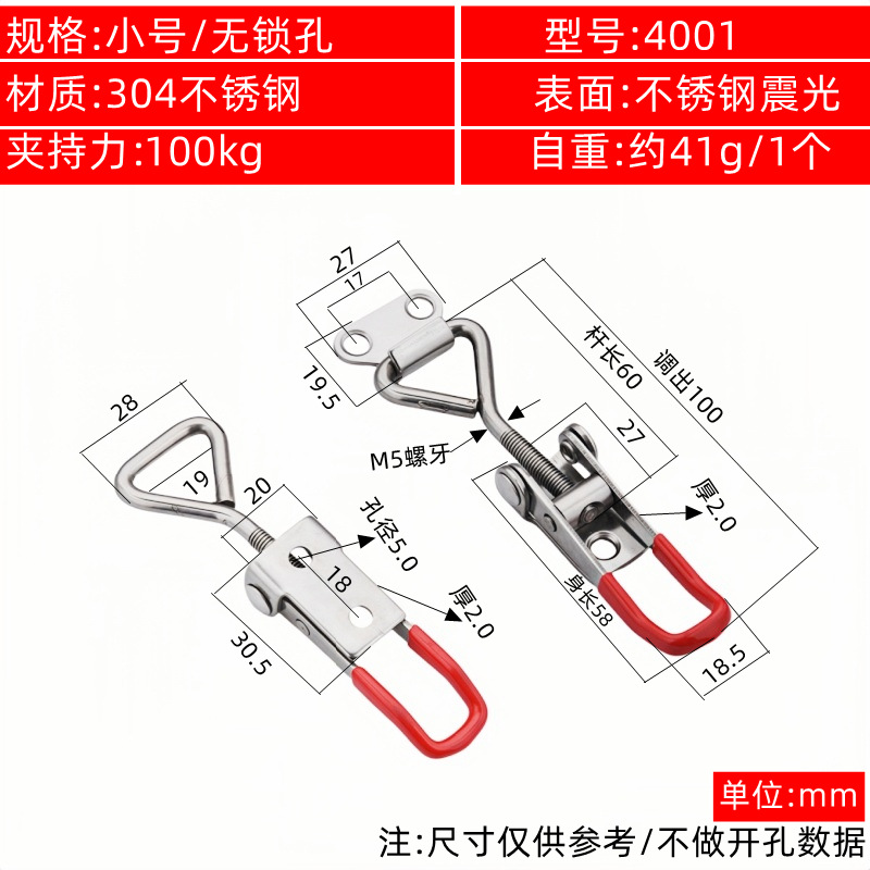 스테인레스 스틸 퀵 클램프 스테인레스 스틸 잠금 버클 조정 가능한 Hasp 잠금 클립 박스 버클 액세서리 도어 볼트 클램프 4003