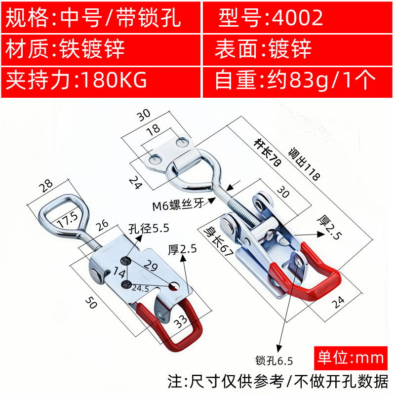 • 4002/열쇠 구멍 포함(아연 도금 철)