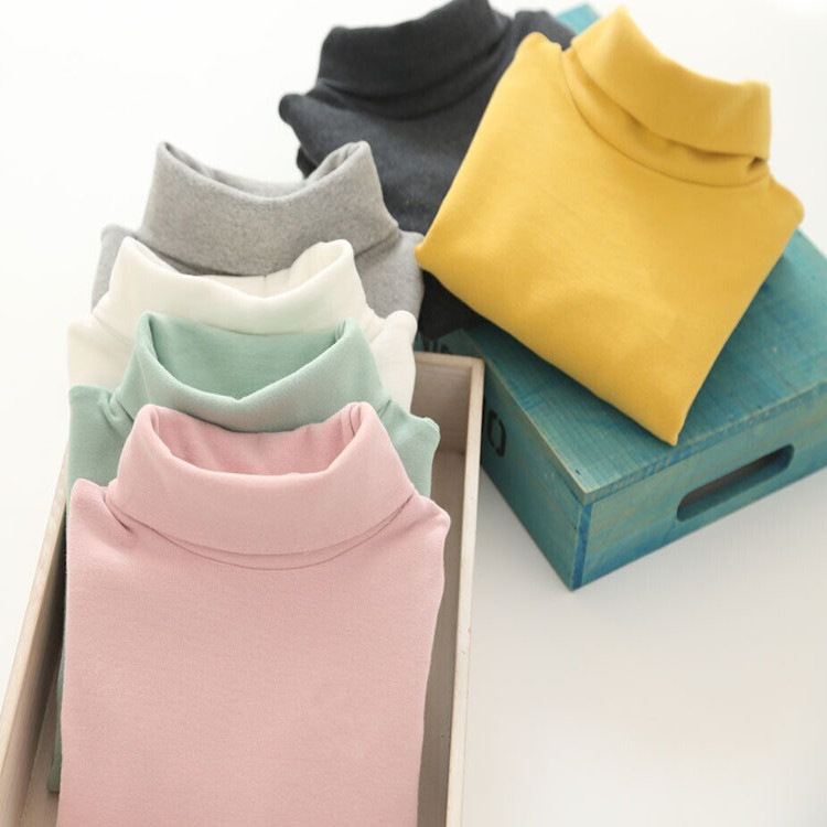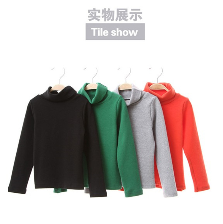 2025년 신상 한국판 순면 하이넥 이너웨어 아동용 긴팔 하이넥 티셔츠 아동용 하이넥 이너웨어