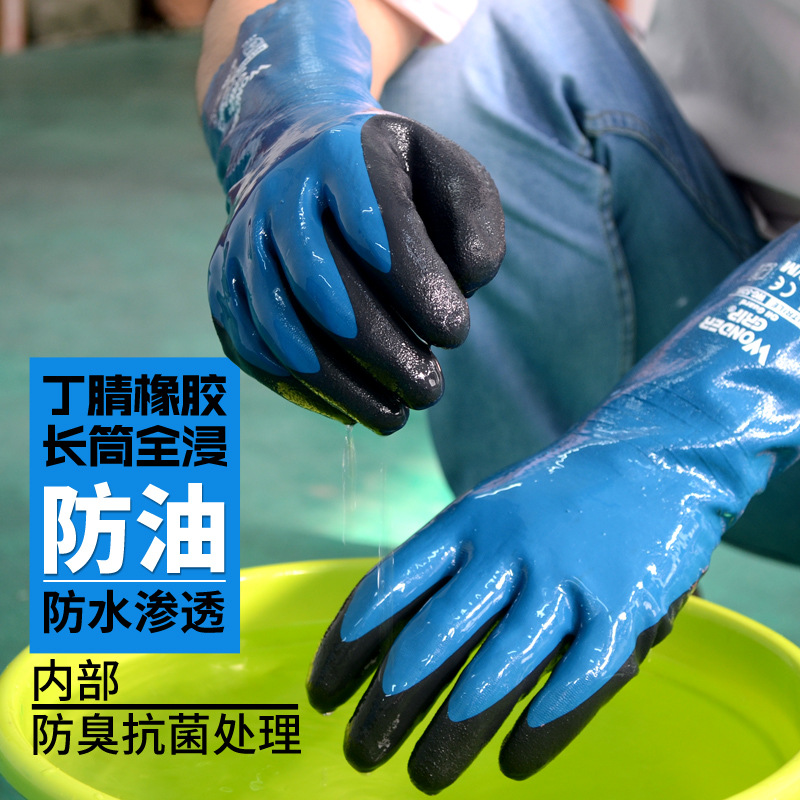 Duoli WG-528L 니트릴 국자 긴팔 방수 및 내유성 작업 장갑 내마모성 및 내유성