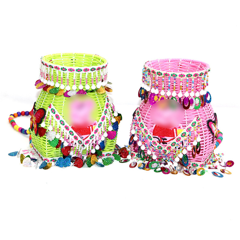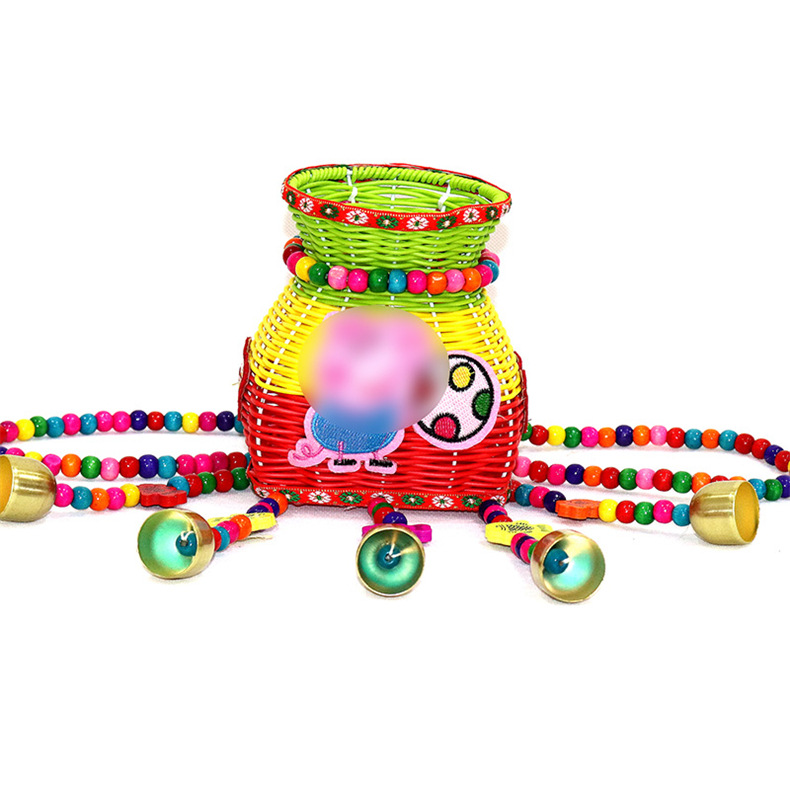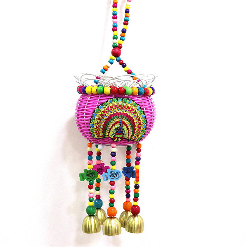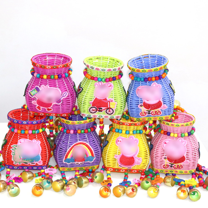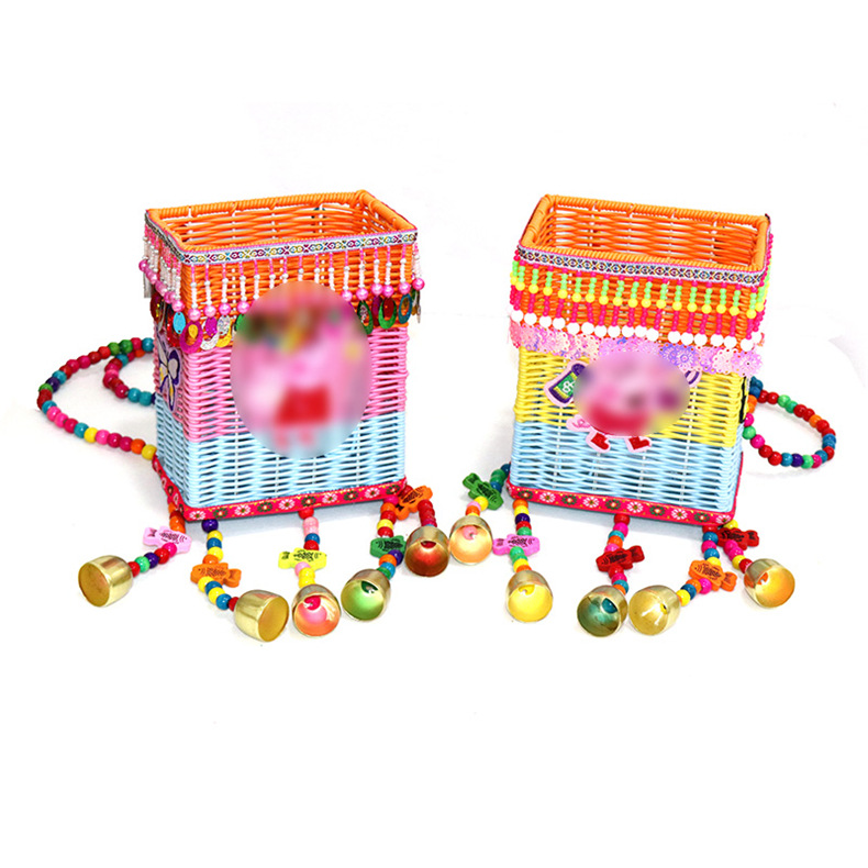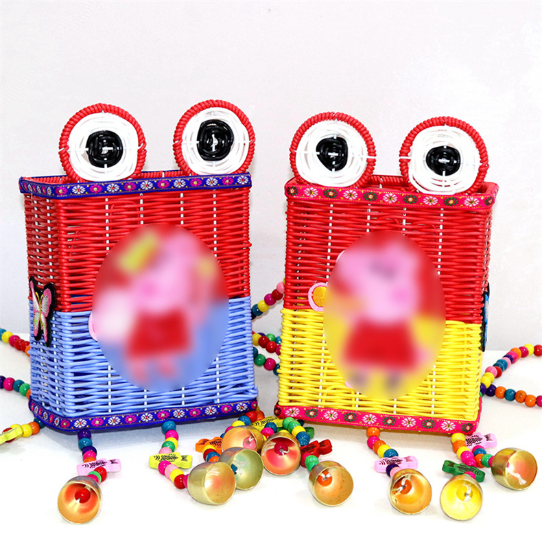 새로운 작은 바구니 색 플라스틱 짠 바구니 바구니 바람 차임 어깨 색 어린이 바구니 펜던트