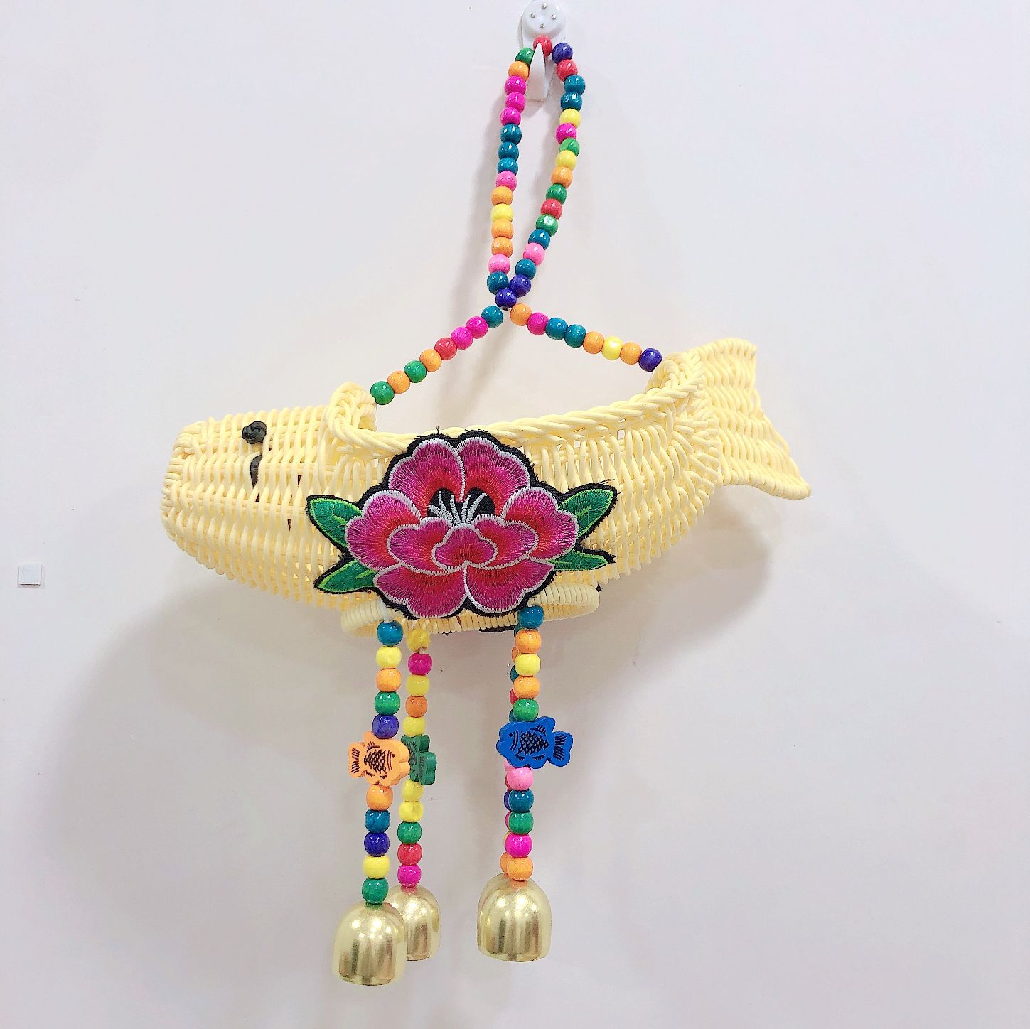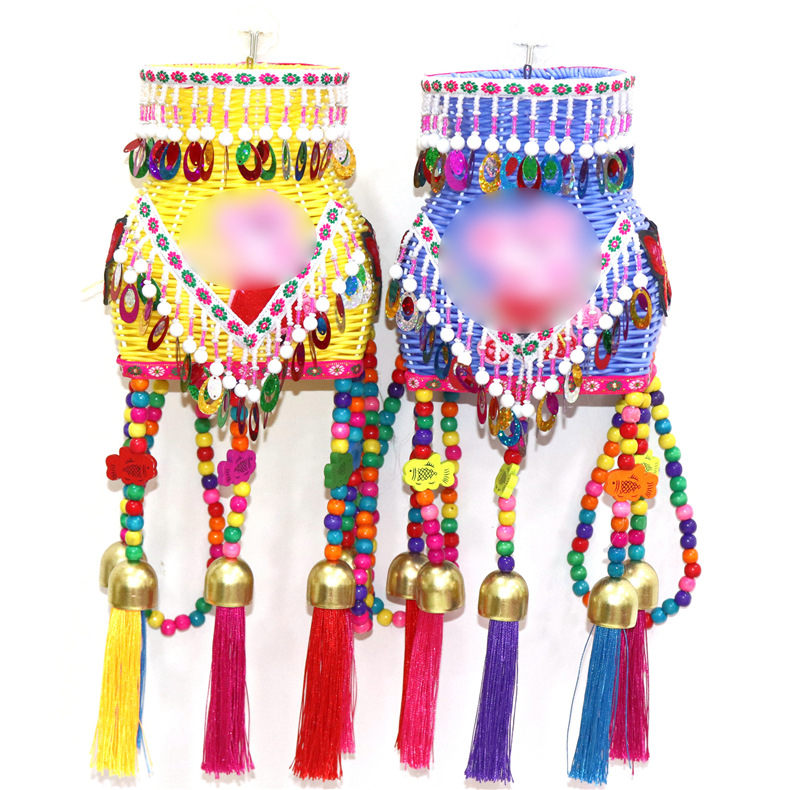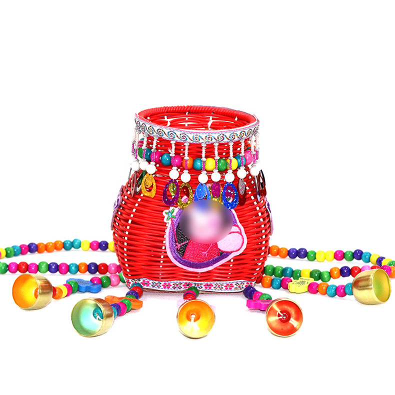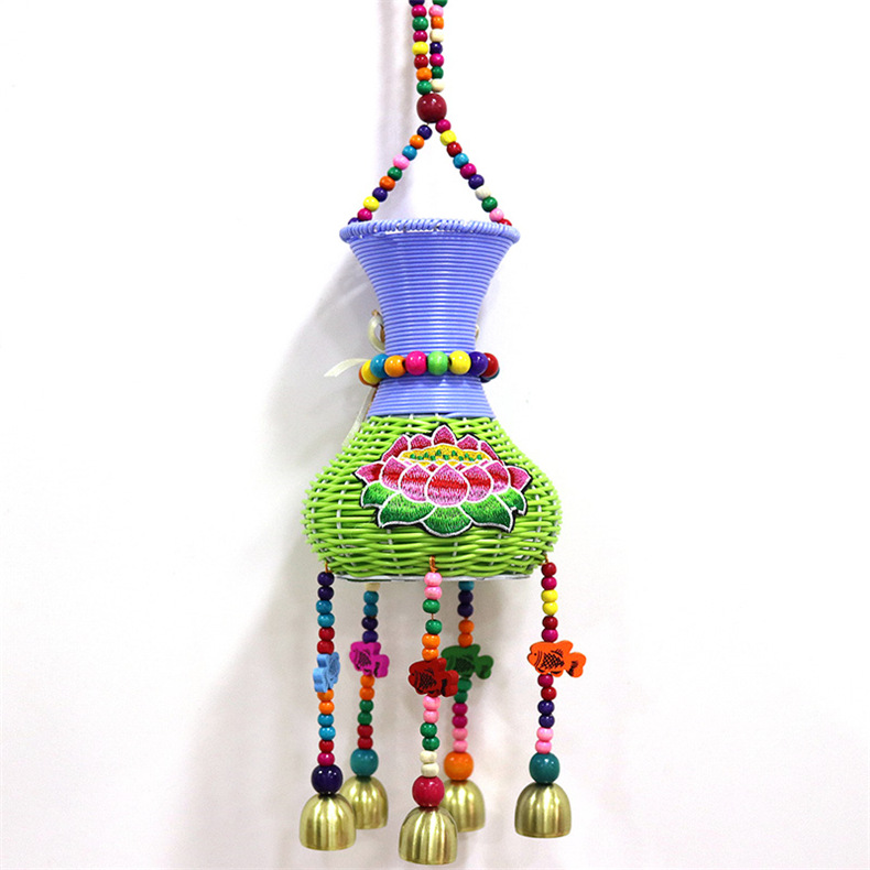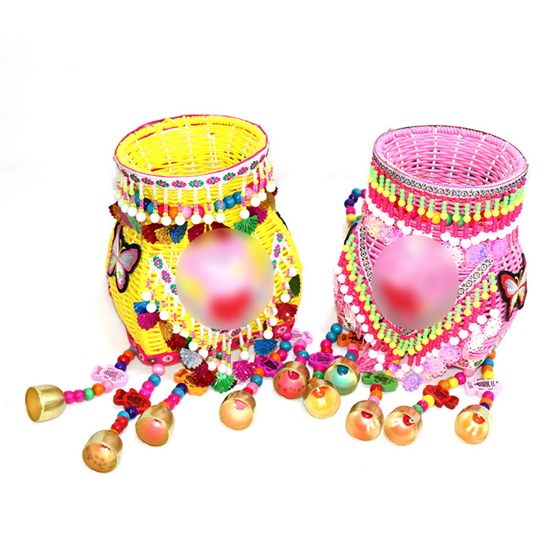 새로운 작은 바구니 색 플라스틱 짠 바구니 바구니 바람 차임 어깨 색 어린이 바구니 펜던트