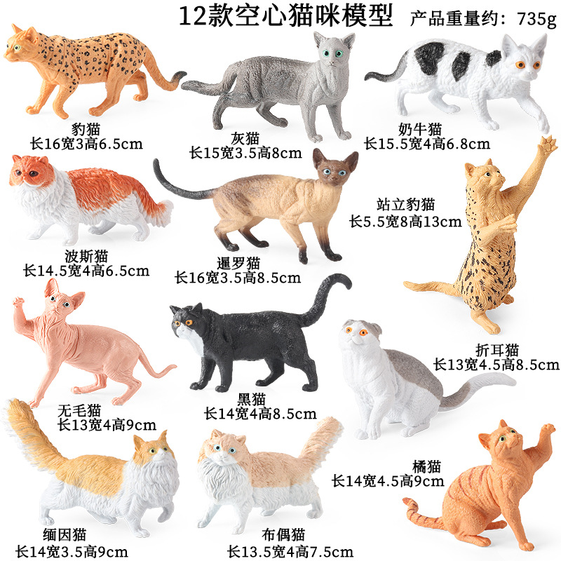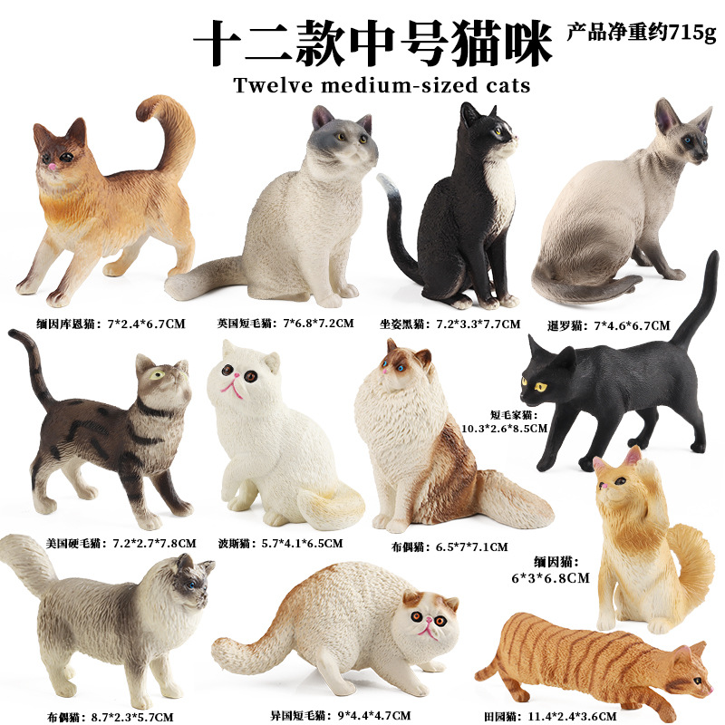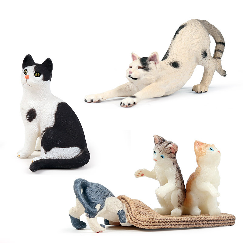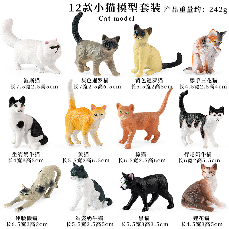 어린이의인지 시뮬레이션 단단한 동물 고양이 모델 장난감 세트 고양이 노란색 고양이 짧은 꼬리 고양이 흑인과 백인 고양이 장식품