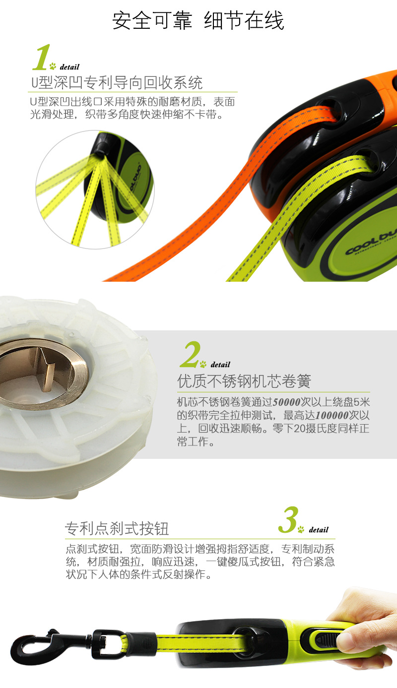 공장 직접 애완 동물 용품 애완 동물 자동 개폐식 견인 로프 새로운 개 견인 5 미터 반사 벨트
