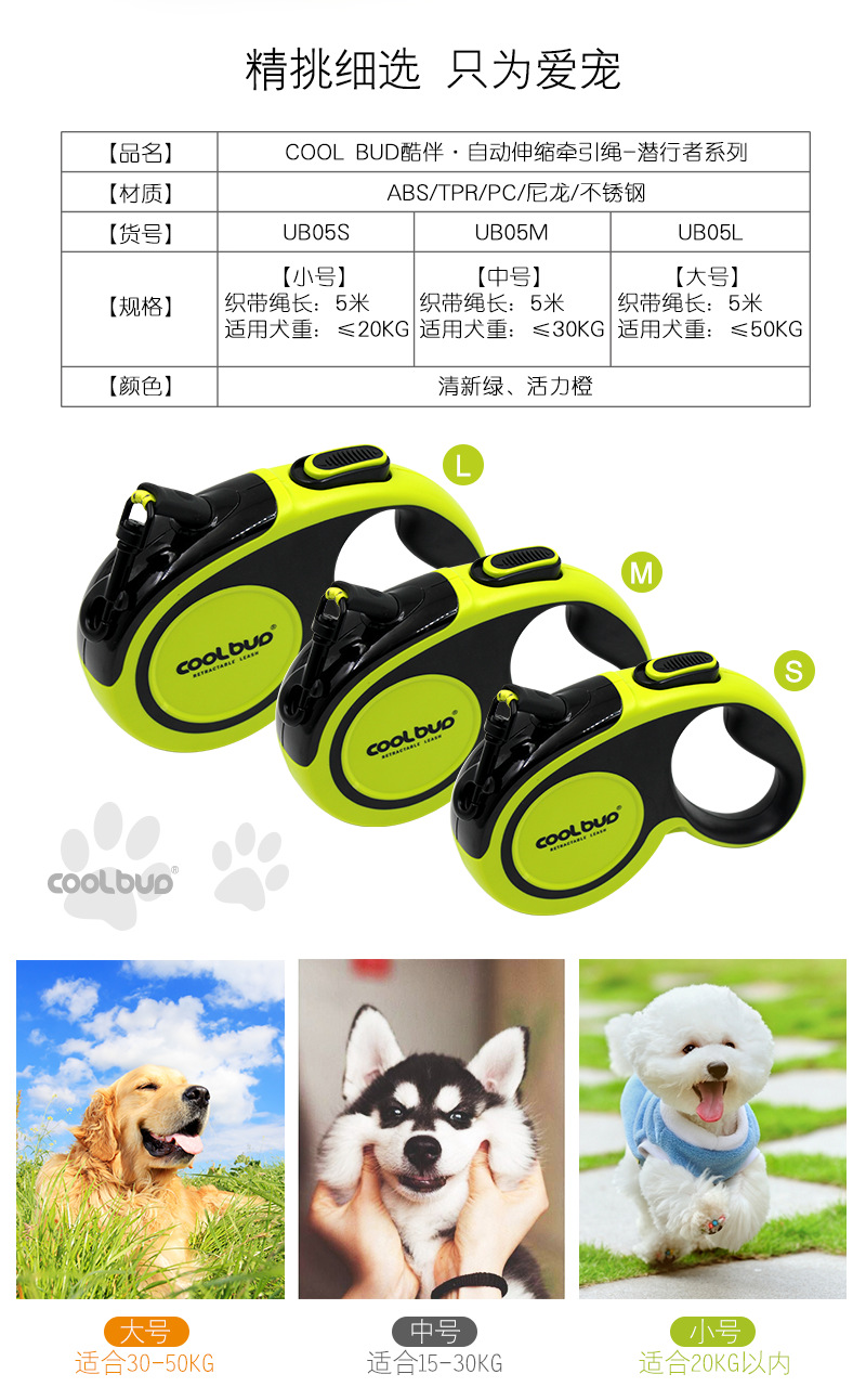 공장 직접 애완 동물 용품 애완 동물 자동 개폐식 견인 로프 새로운 개 견인 5 미터 반사 벨트스토어 가기