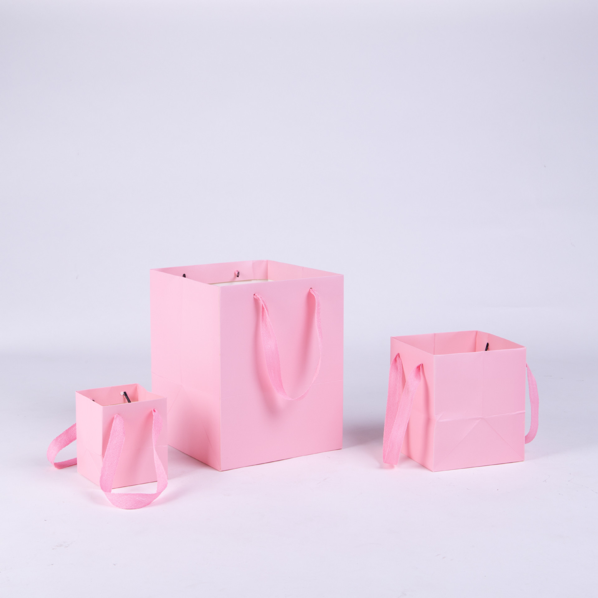 광장 선물 가방 재고 테이크 아웃 핸드백 케이크 포장 가방 선물 가방 넓은 바닥 핑크 흰색 판지 가방스토어 가기