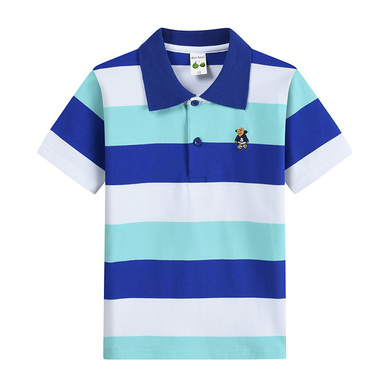 어린이 반팔 아동복 한국식 중대형 아동용 티셔츠 면 스트라이프 라펠 폴로 셔츠 크로스 보더 0-15 세