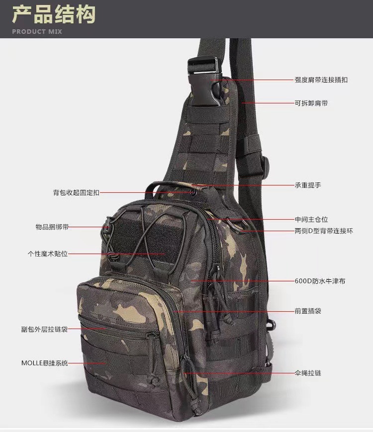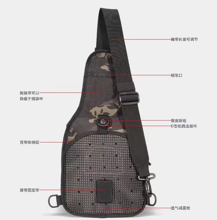 다기능 전술 배낭, 스포츠 숄더백, 캐주얼 하이킹 및 사이클링 가슴가방, 아웃도어 군용 위장 소형 가슴가방