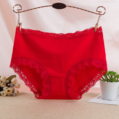 058 미드 웨이스트 면 여성 속옷 면 바닥 가랑이 편안한 통기성 레이스 엉덩이 플러스 사이즈 빨간 브리프