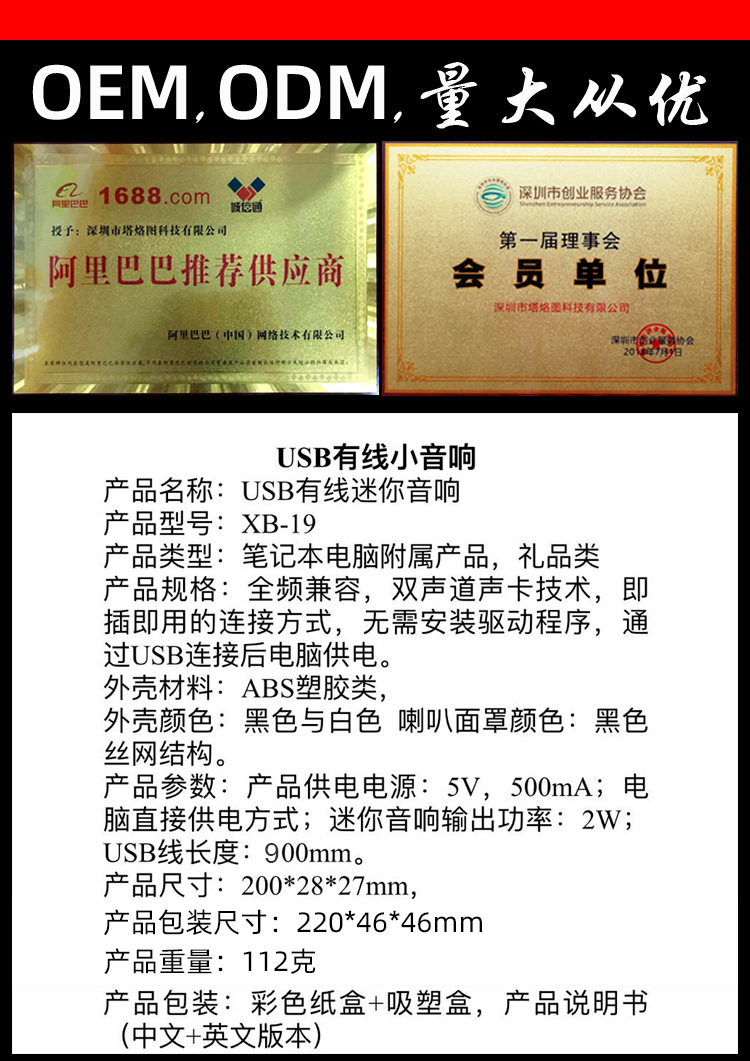 공장 직영 USB 컴퓨터 소형 스테레오 플러그 앤 플레이 노트북 데스크탑 롱 스피커 미니 스테레오