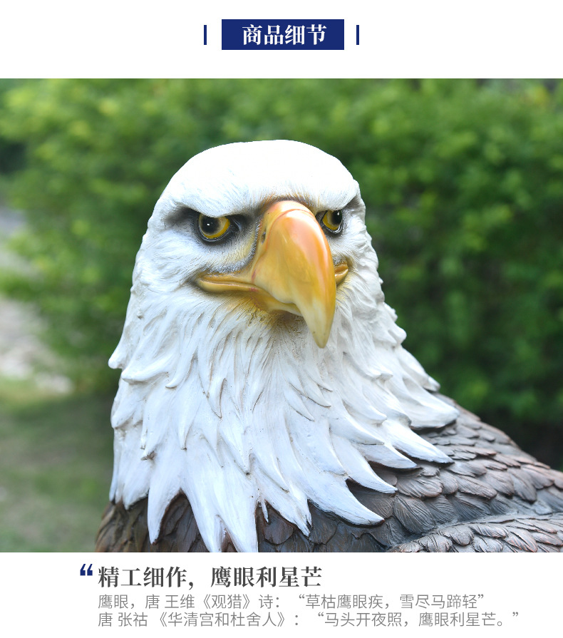 미국 화이트헤드 이글 모형 유리섬유 조각품 야외 정원 풍경 장식 독수리 수지 공예품 선물스토어 가기