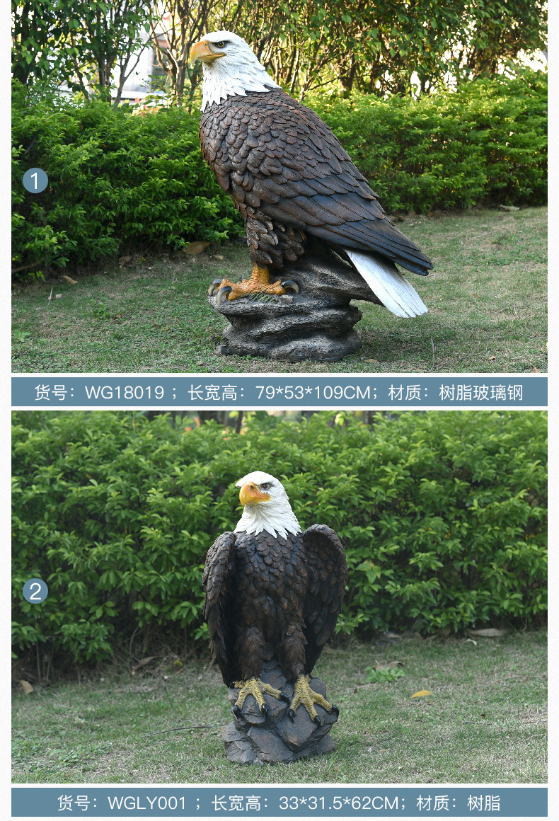미국 화이트헤드 이글 모형 유리섬유 조각품 야외 정원 풍경 장식 독수리 수지 공예품 선물