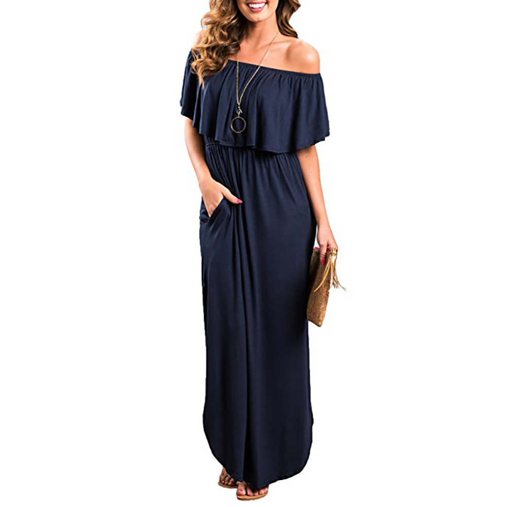 2025 봄/여름 유럽 및 미국에서 인기 있는 올인원 숄더 디자인의 롱 드레스, 주머니가 있는 중간 길이 드레스스토어 가기