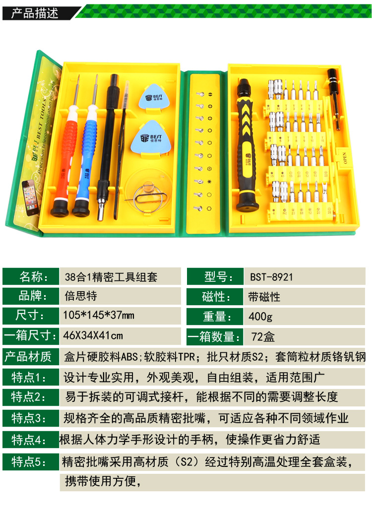 스크류 드라이버 38-in-1 정밀 연장 호스 다기능 애플 아이폰 휴대 전화 분해 드라이버 세트