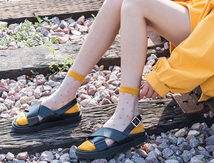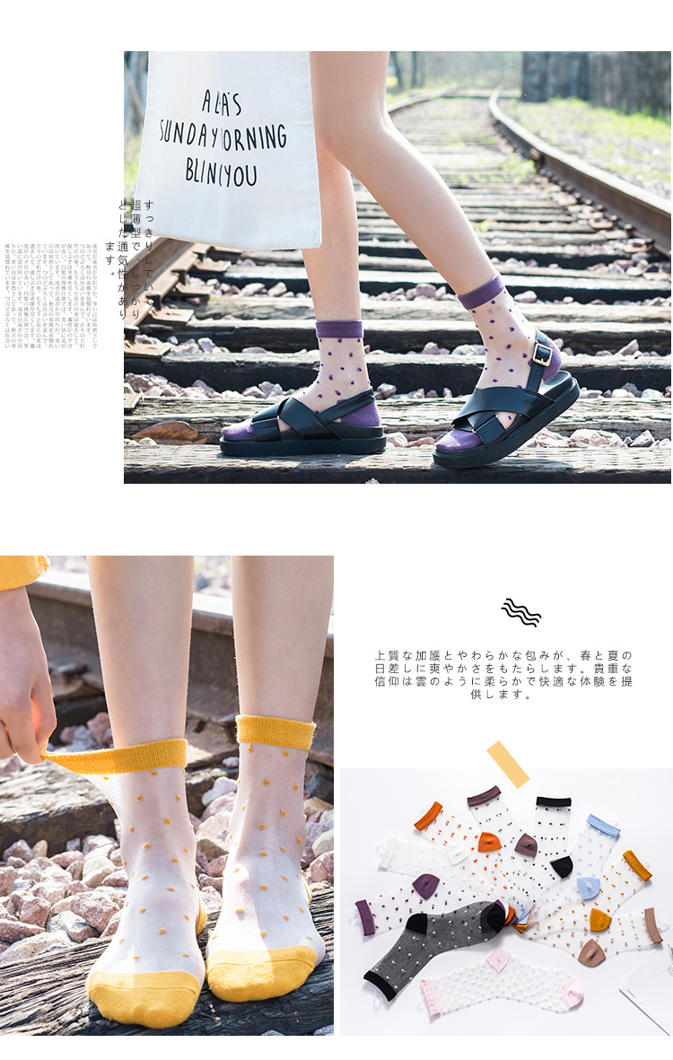 실크 스타킹 여성의 얇은 크리스탈 유리 카드 실크 양말 여성 양말 작은 투명 양말 중간 종아리 길이 양말스토어 가기