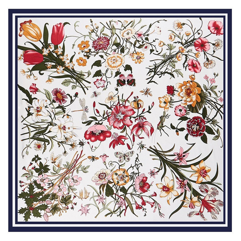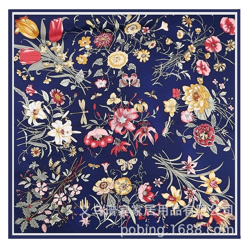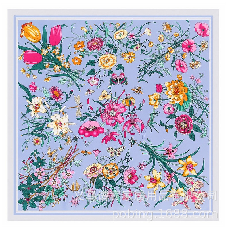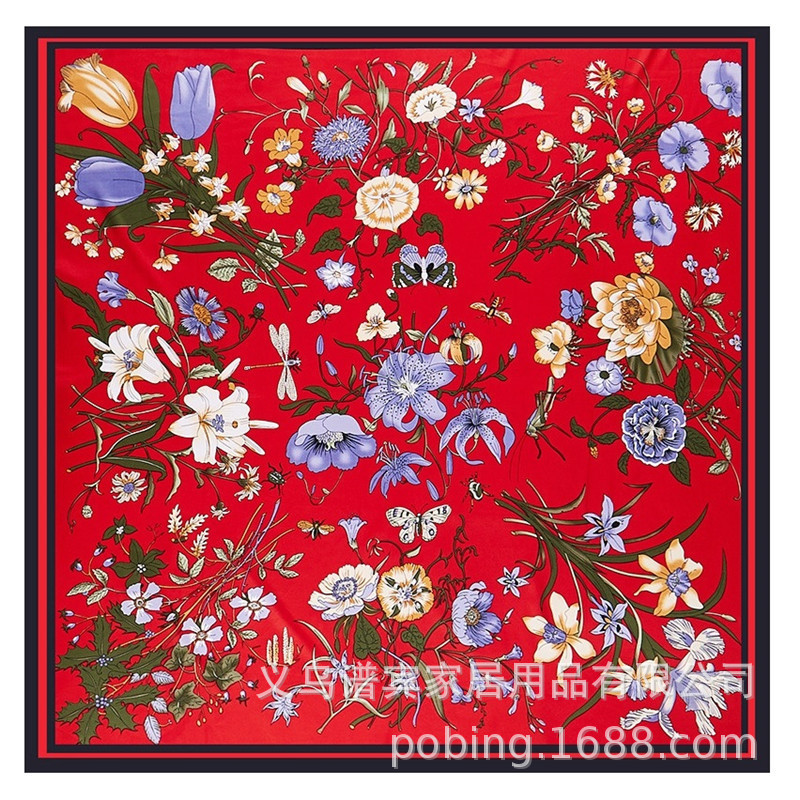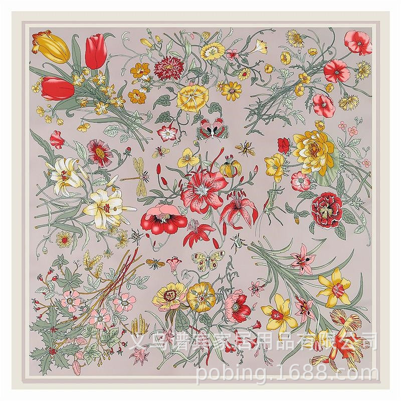유럽과 미국의 새로운 숙녀 패션 실크 스카프 정글 꽃과 새 인쇄 130cm 능직 새틴 대형 사각 숄 스카프