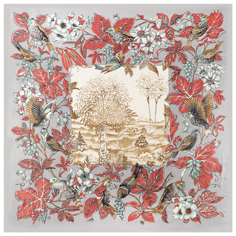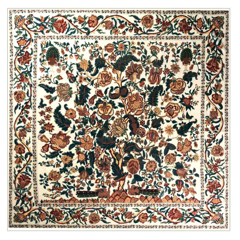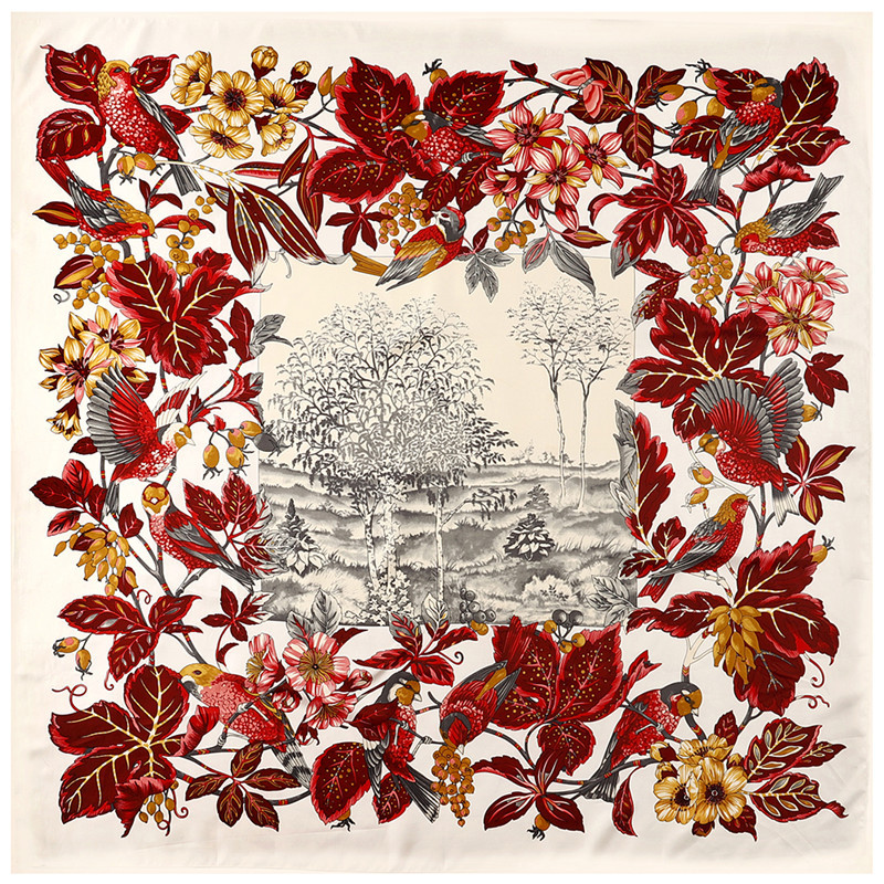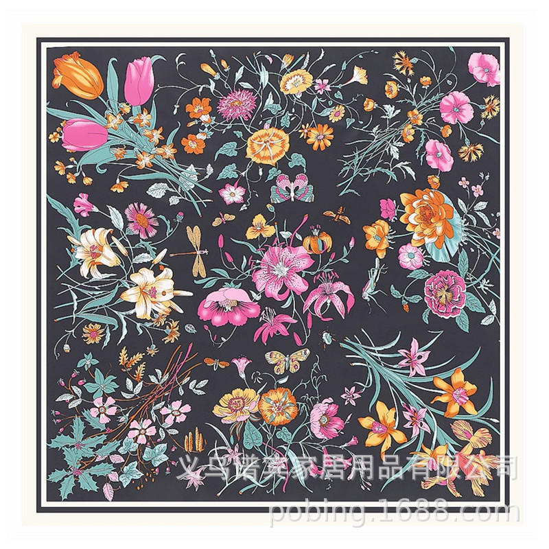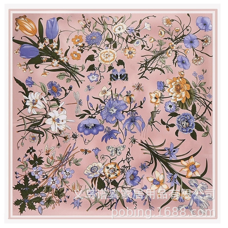 유럽과 미국의 새로운 숙녀 패션 실크 스카프 정글 꽃과 새 인쇄 130cm 능직 새틴 대형 사각 숄 스카프