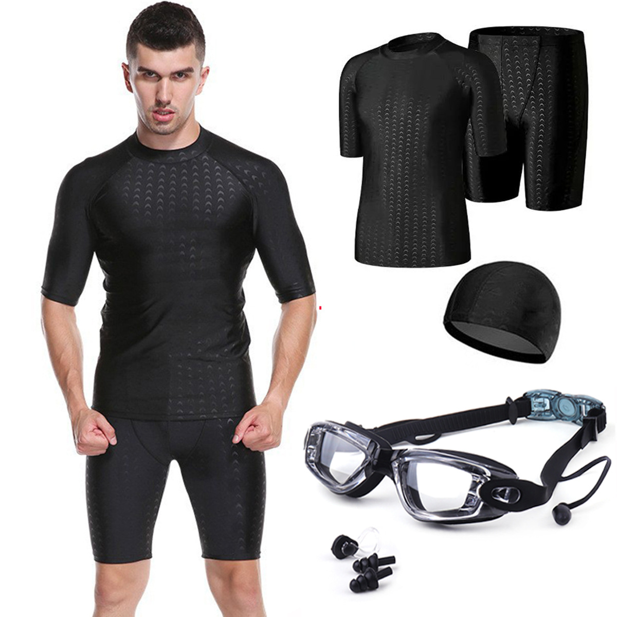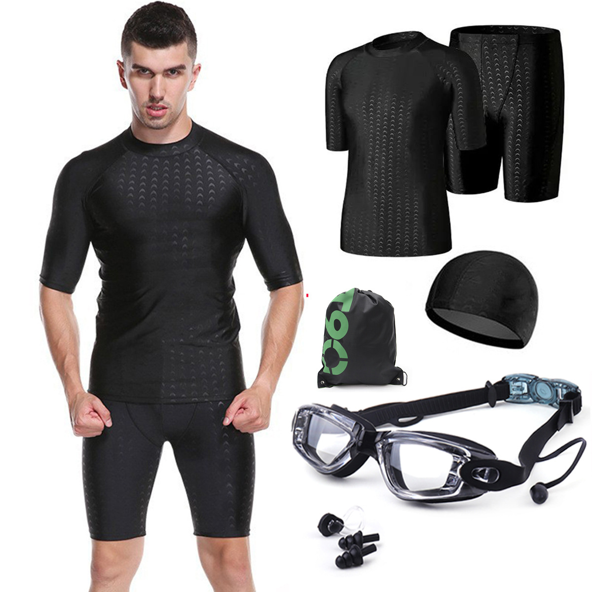 • 남성 수영복 + 수영 트렁크 + 수영 모자 + 수영 고글 + 코 클립 귀마개 + 보관 가방