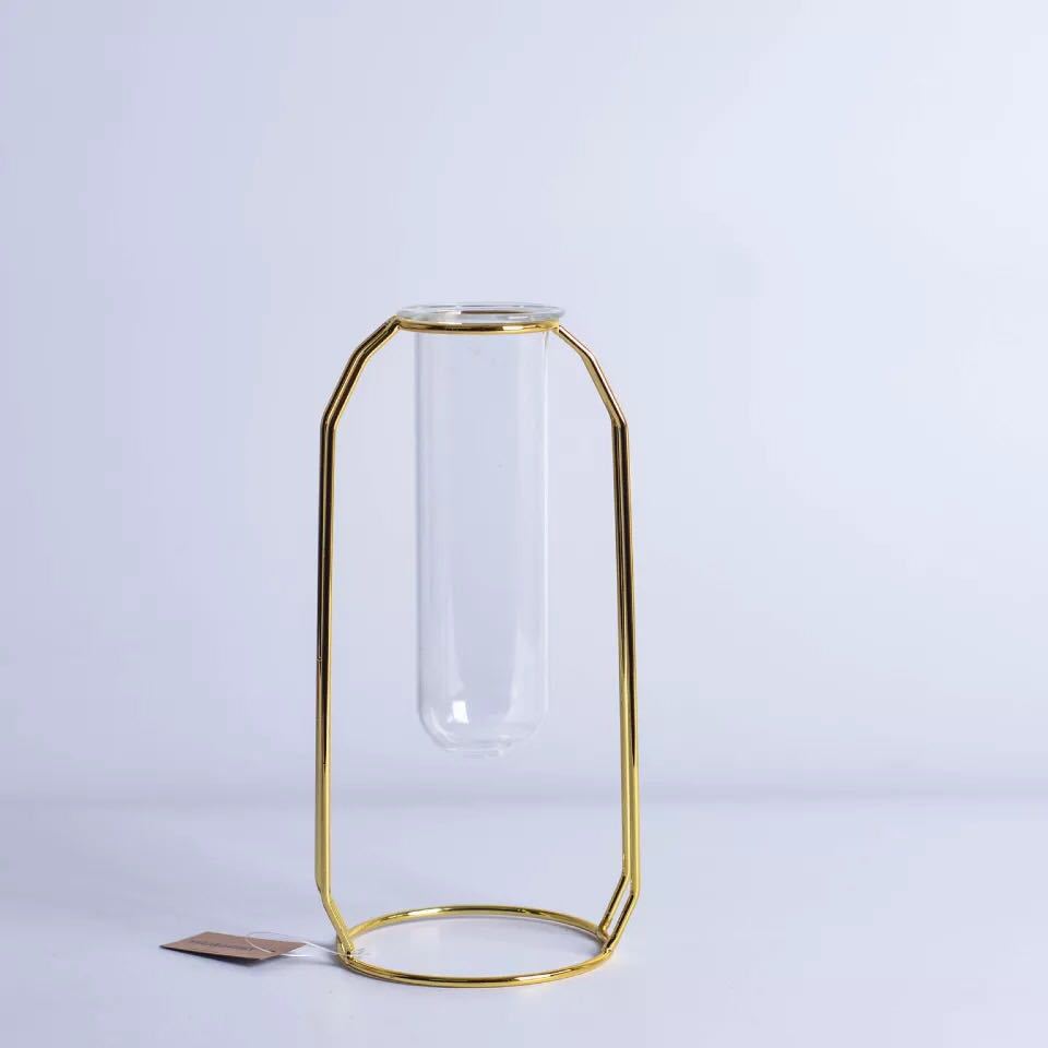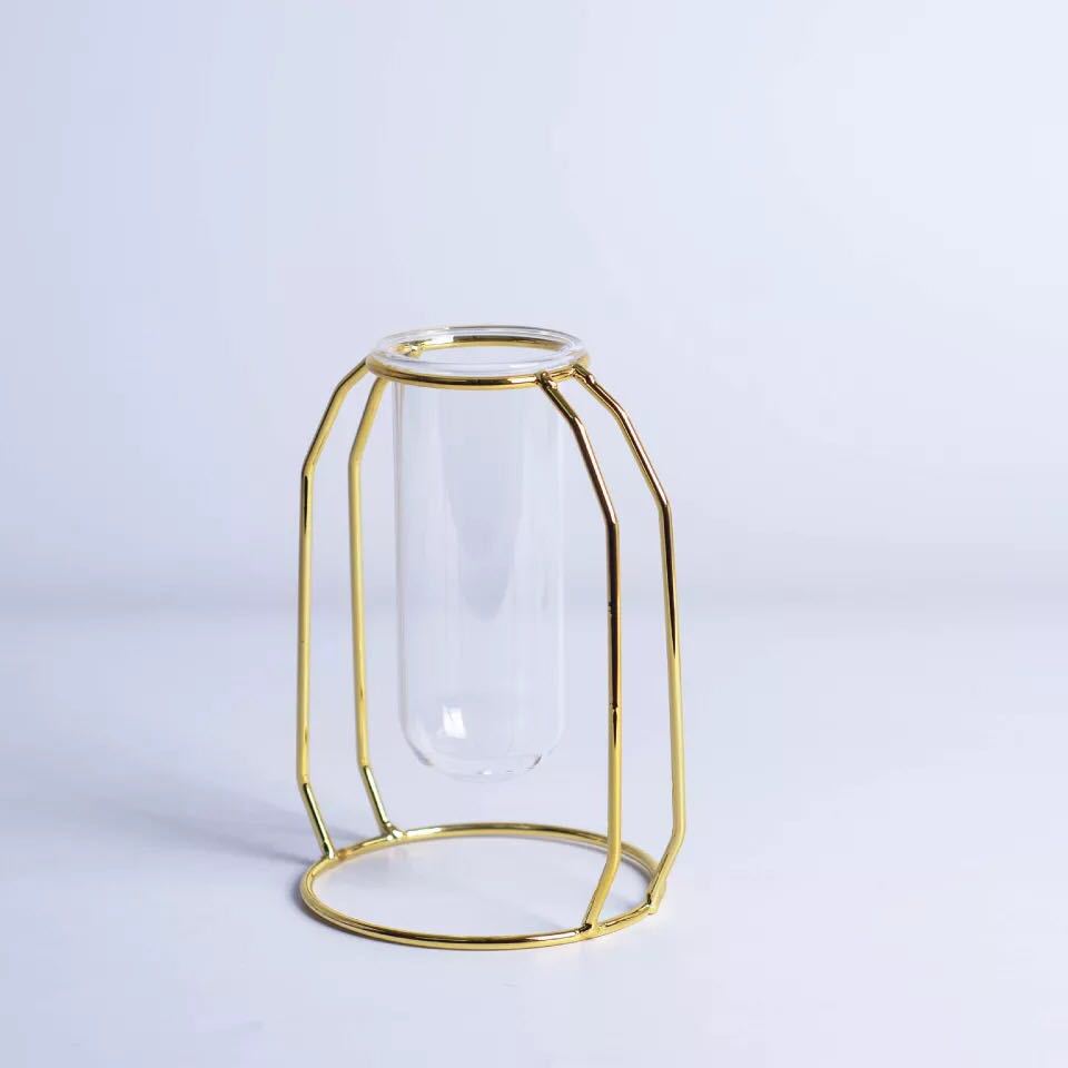 북유럽 인 스타일 전기 도금 금 장미 금 철 테스트 튜브 유리 꽃꽂이 꽃병 꽃 식물 수경 장식품