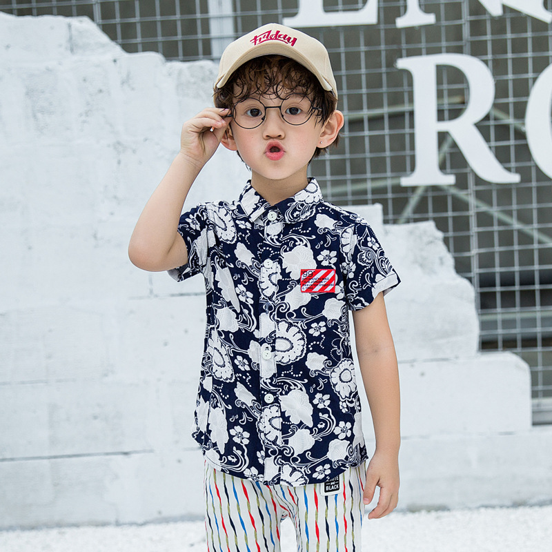 2021 여름 의류 어린이 셔츠 여름 옷 인쇄 어린이 반팔 셔츠 신선하고 캐주얼 한 유행