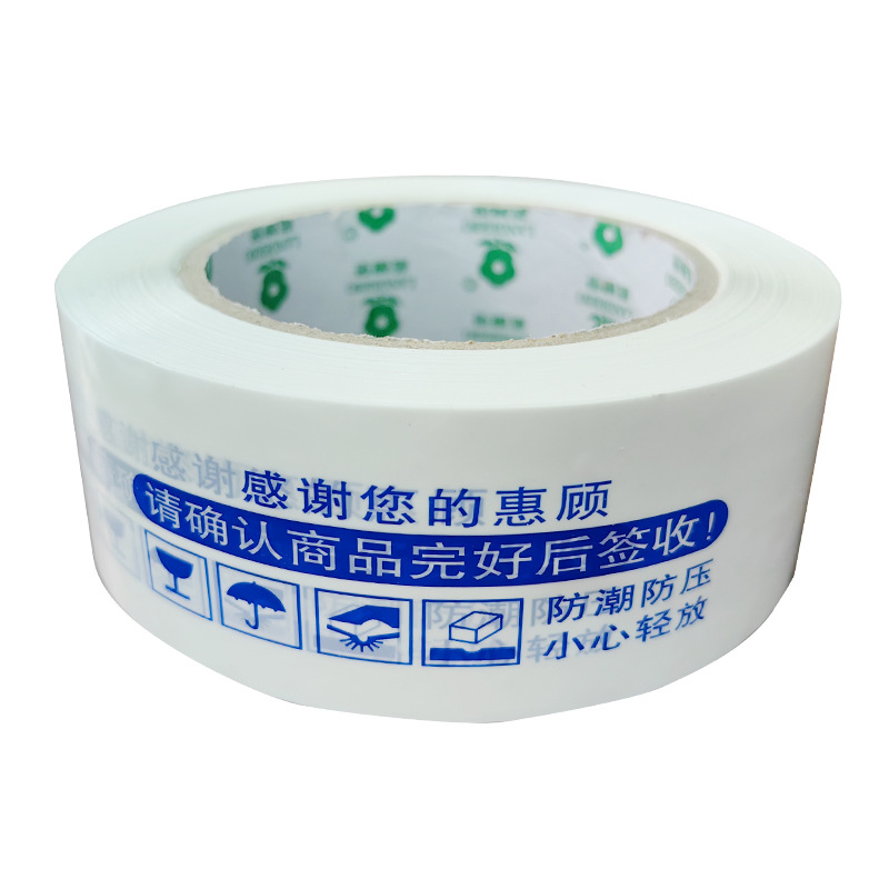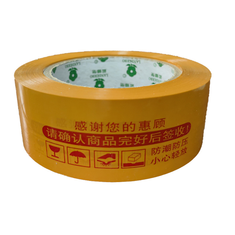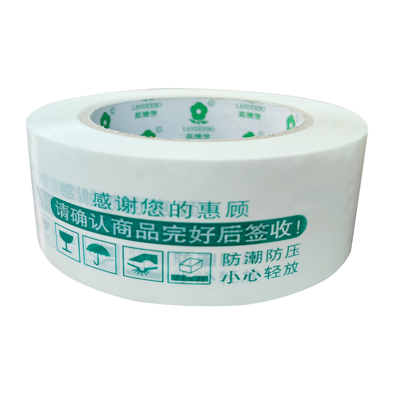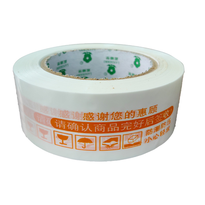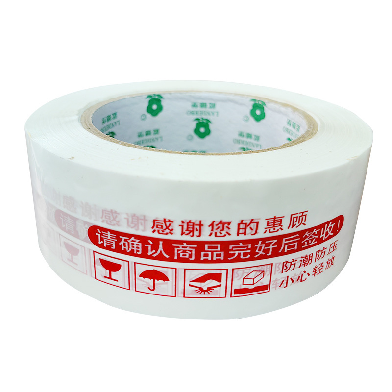 흰색 배경에 빨간 글씨 인쇄된 포장 테이프, 경고 문구가 있는 박스 봉인용 대형 롤 테이프, 43*150 고점착