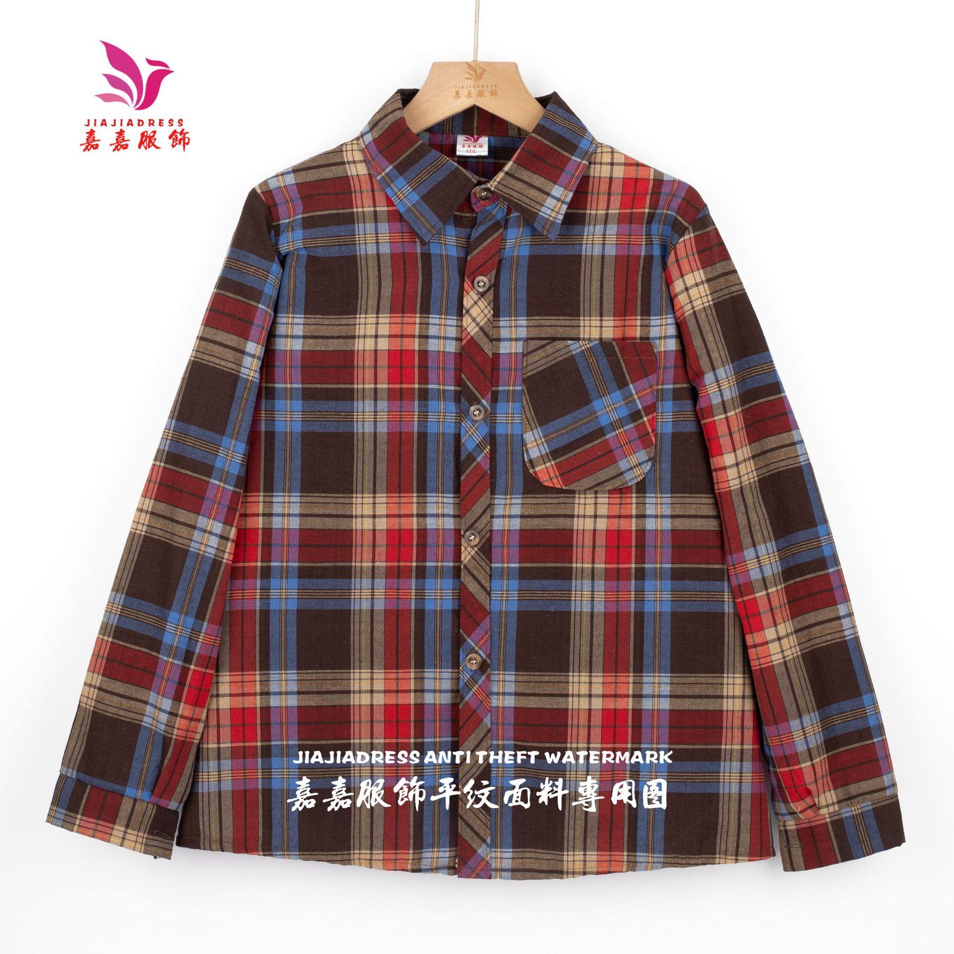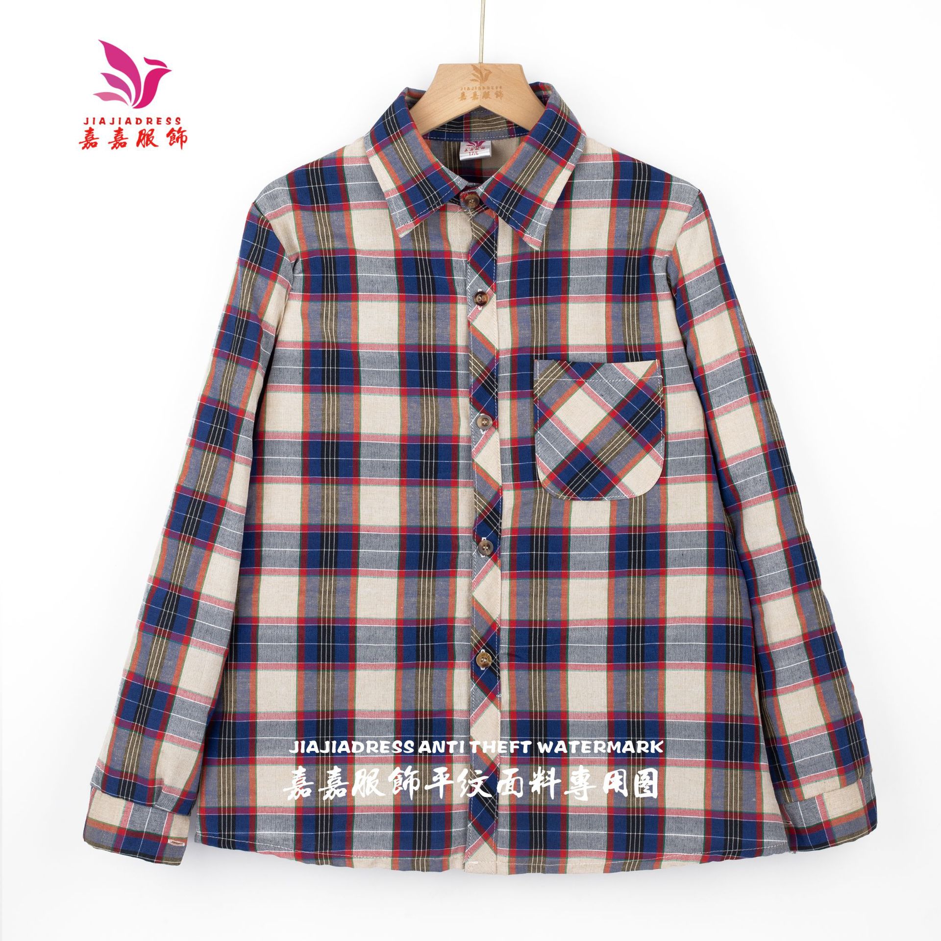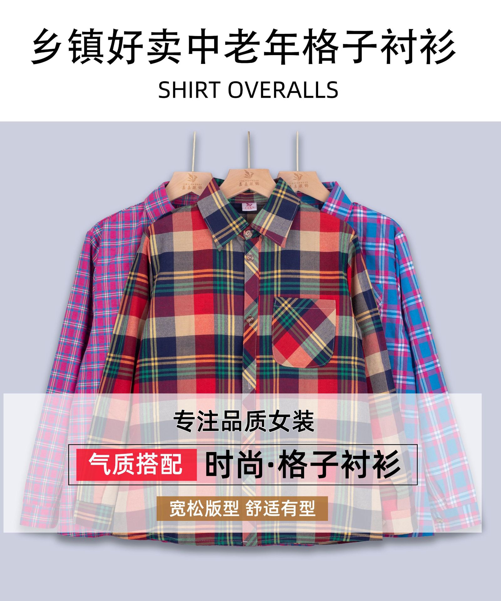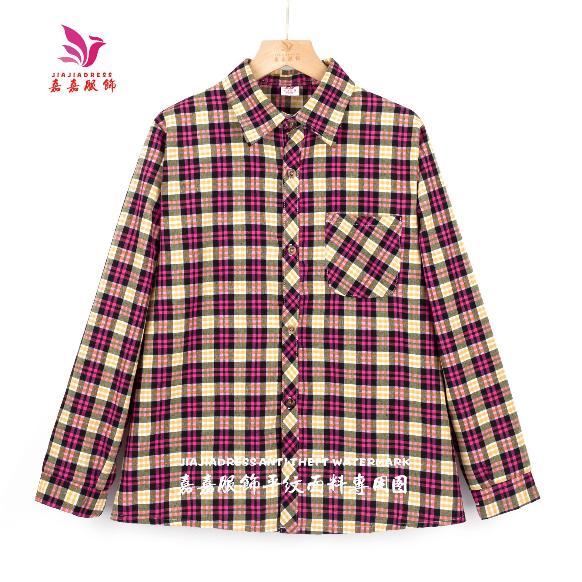 중년 · 노년층 격자 무늬 셔츠 여성 대형포… 느슨한 어머니의 다색 셔츠 긴팔 여성 폭포