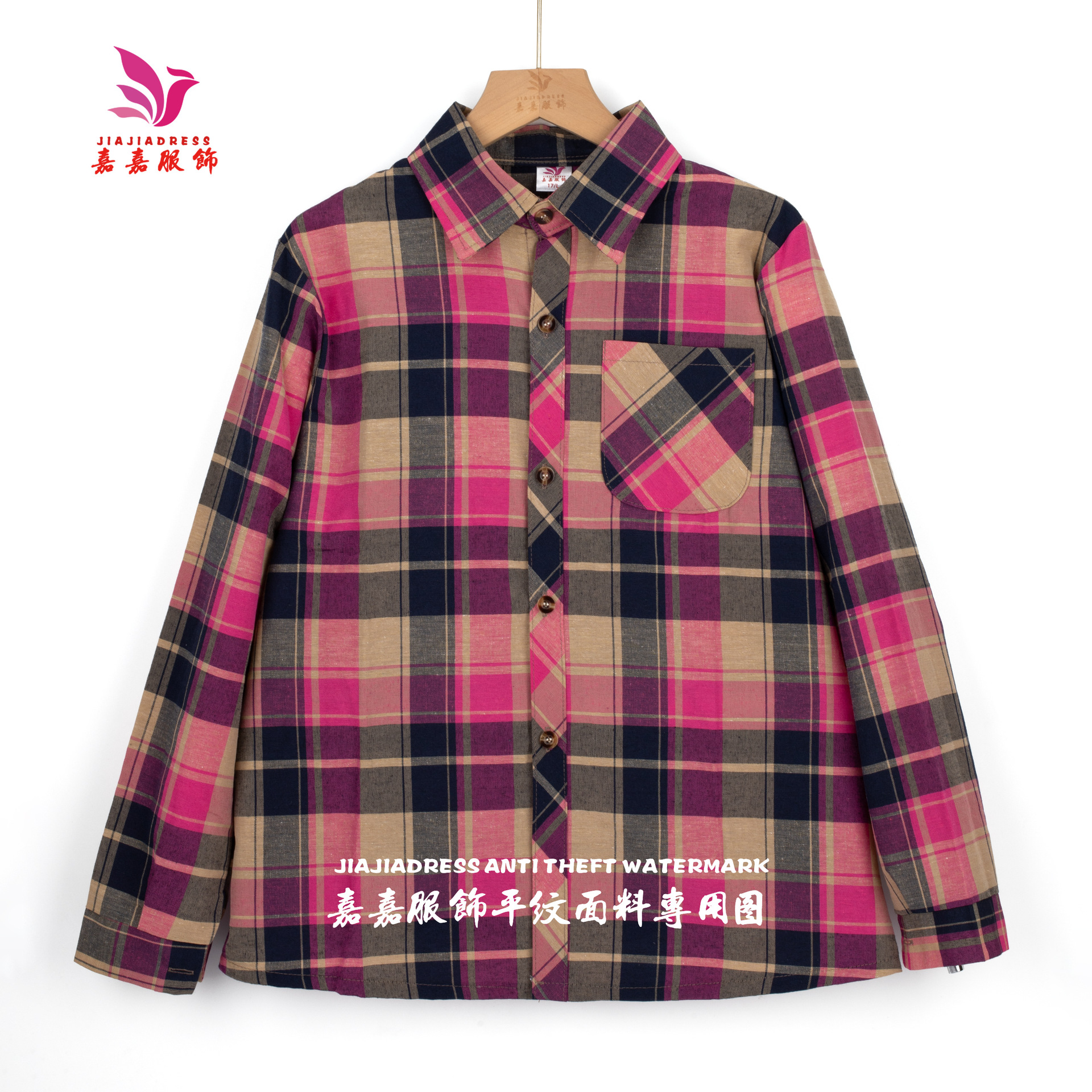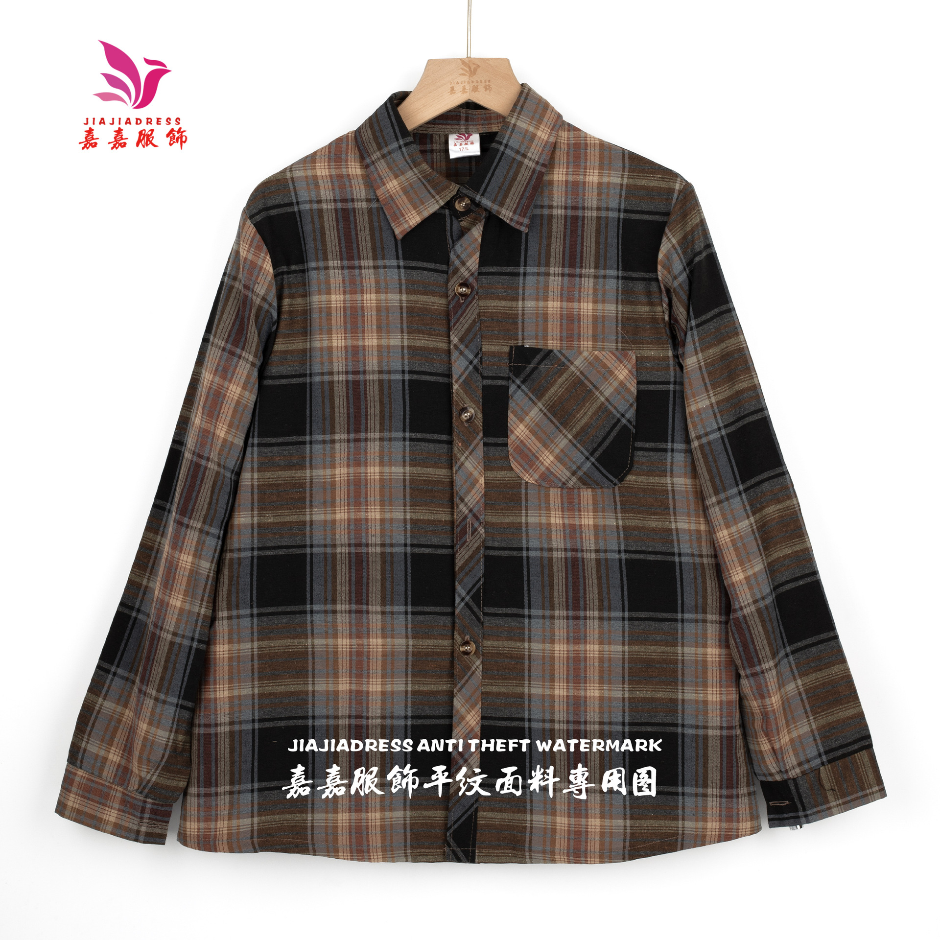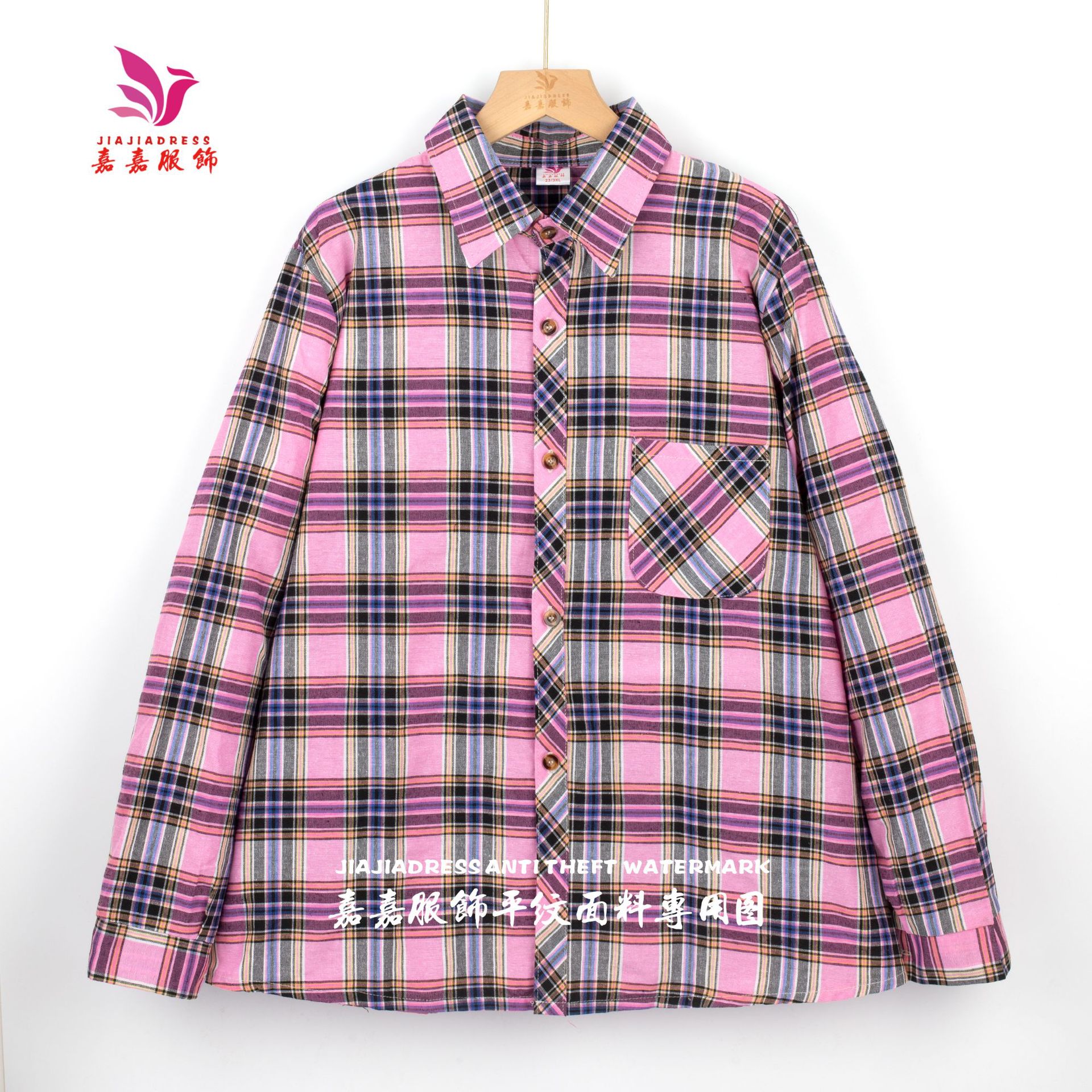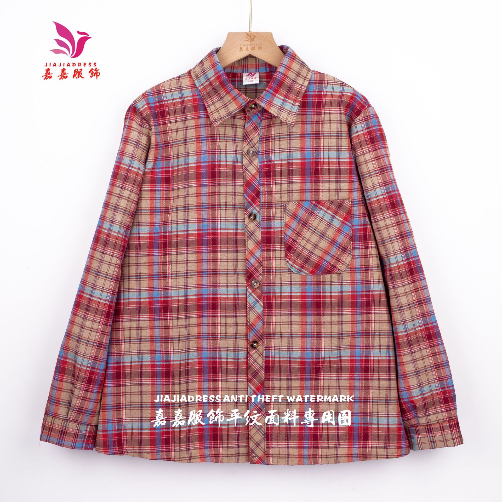 중년 · 노년층 격자 무늬 셔츠 여성 대형포… 느슨한 어머니의 다색 셔츠 긴팔 여성 폭포