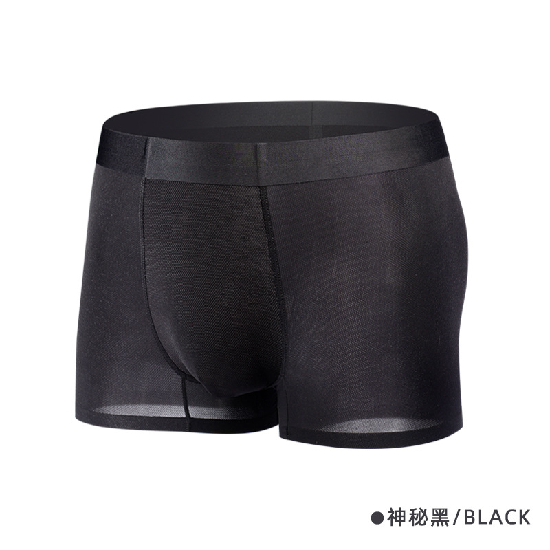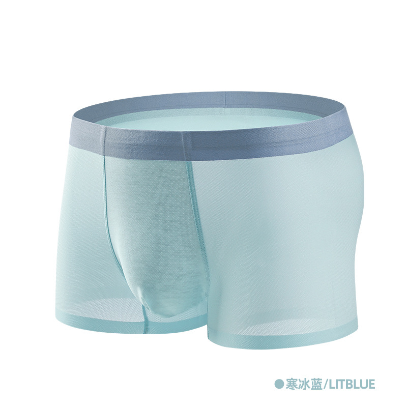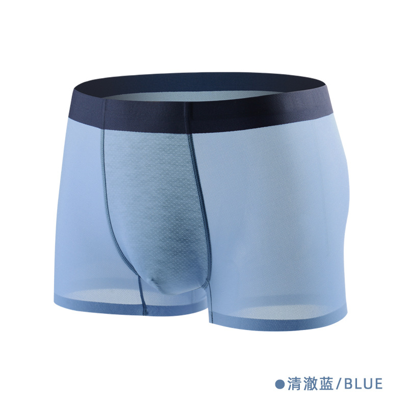 소스 제조업체 Piaofei 얼음 실크 원활한 남성 속옷 단색 통기성 메쉬 항균 여름 남성 복서 팬티 도매스토어 가기
