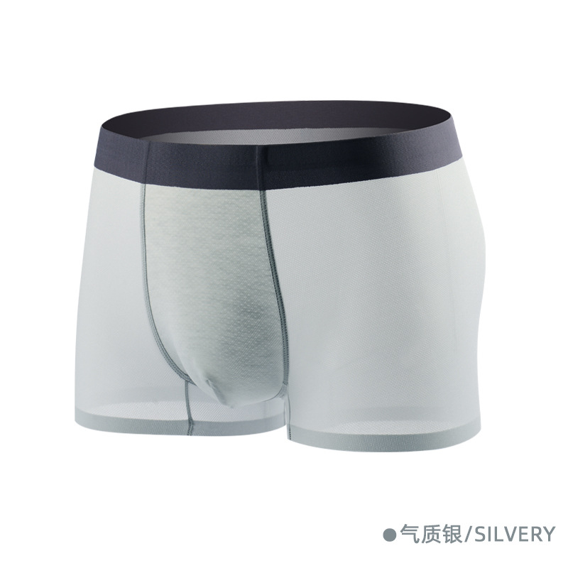 소스 제조업체 Piaofei 얼음 실크 원활한 남성 속옷 단색 통기성 메쉬 항균 여름 남성 복서 팬티 도매