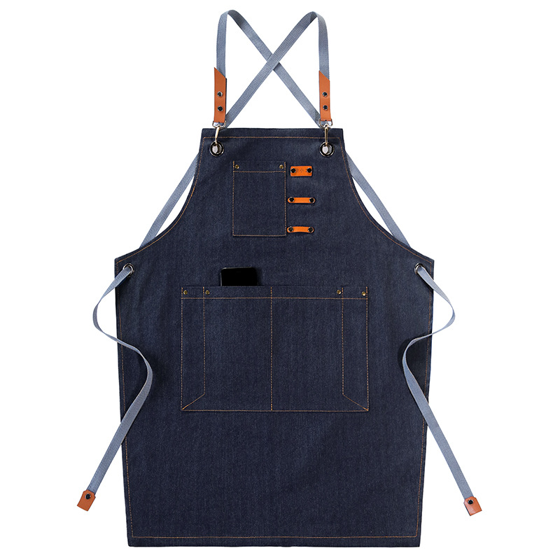 데님 앞치마 인쇄 주방 요리 커피 숍 이발사 남성과 여성의 베이킹 레스토랑 작업 옷 자수 로고스토어 가기