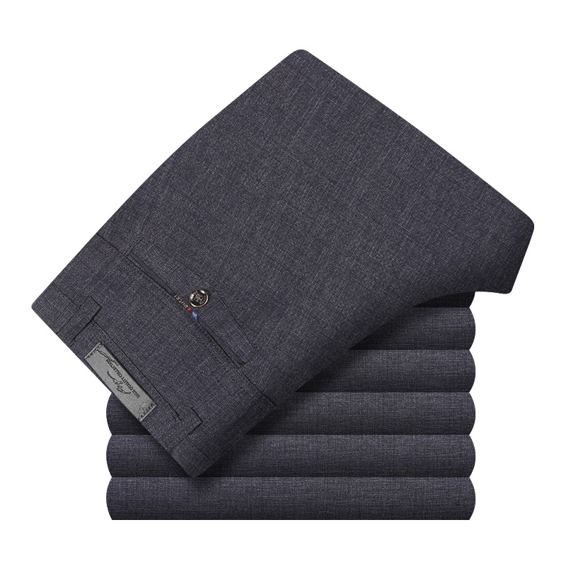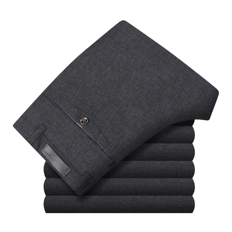 여름 얇은 캐주얼 바지 남성 바지 스트레이트 스트레치 비즈니스 느슨한 비 다림질 바지 중년 및 노인 하이 웨이스트 토레 바지