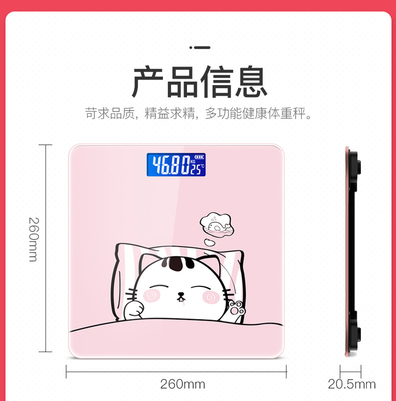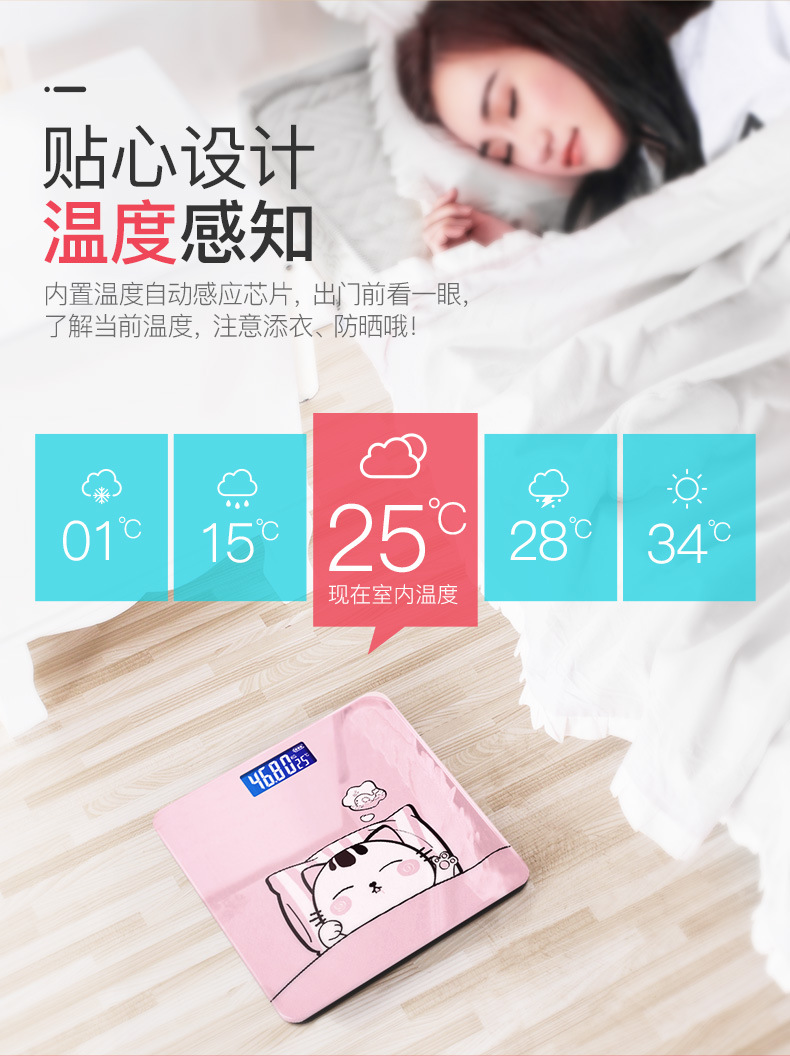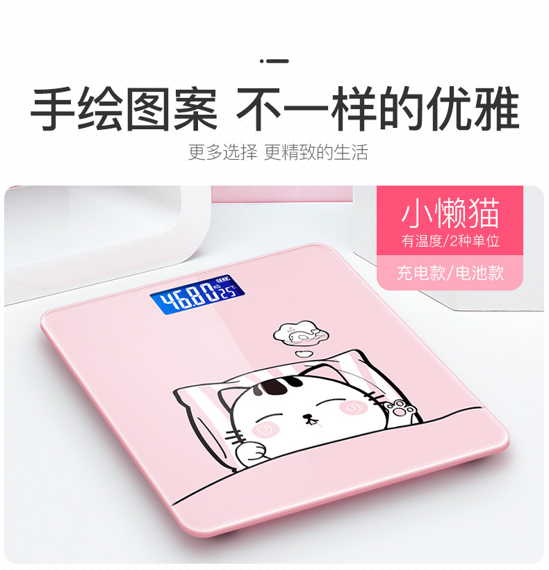 정확한 전자 체중계, 가정용 소형 기숙사 체지방 측정기, 귀여운 인체 체중계, 건강 체중계, 만화 스타일 전자 저울