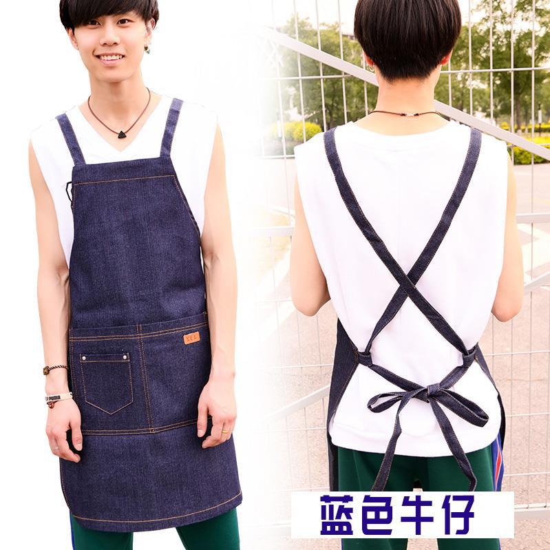 주방 데님 앞치마 커피 숍 레스토랑 미용 매니큐어 남성과 여성 그림 웨이터 작업복 어린이 로고스토어 가기