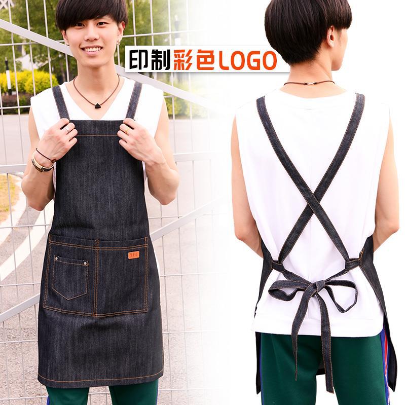 주방 데님 앞치마 커피 숍 레스토랑 미용 매니큐어 남성과 여성 그림 웨이터 작업복 어린이 로고