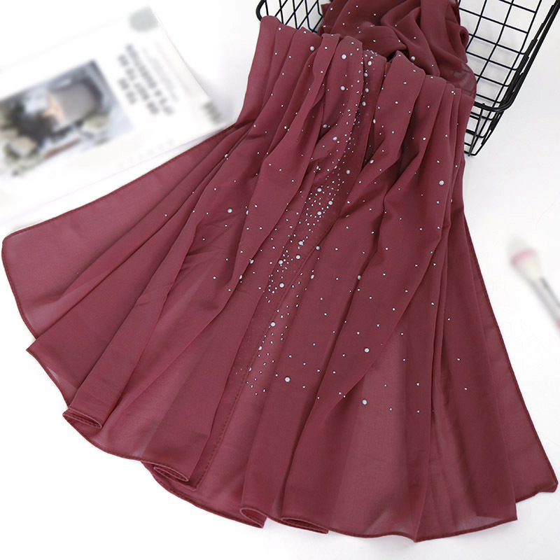 뉴 말레이시아 단색 핫 드릴링 롱 타올 도매 도자기 보석 진주 쉬폰 하이 퀄리티 스카프 YW98스토어 가기