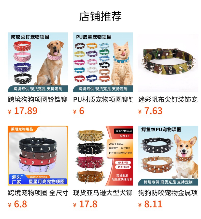 엄선된 가죽 목줄 애완동물 목걸이 새로운 스타일의 목걸이 ins 해외 신제품 도매 강아지 목줄 애완견스토어 가기