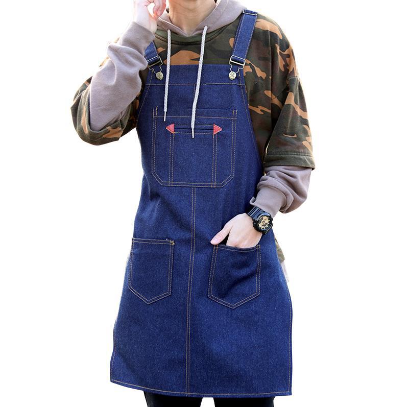 데님 앞치마, 커피숍, 네일샵, 밀크티 레스토랑, 가정용, 남녀공용, 주방, 베이킹, 네일아트 작업복, 로고 인쇄 가능스토어 가기