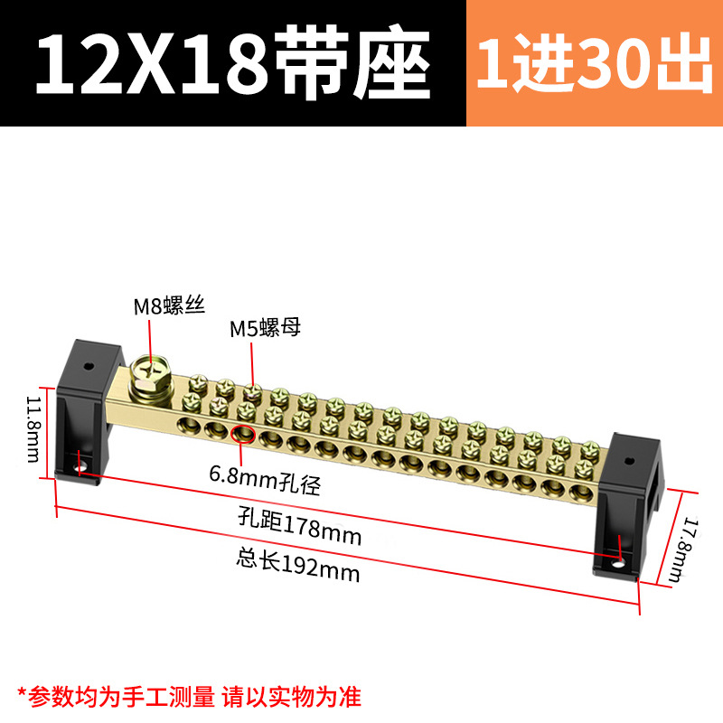 10*18 이중 열 12/16/20/24/30/40/50 홀 제로 접지열 황동 배선 버스 터미널 배포 박스스토어 가기