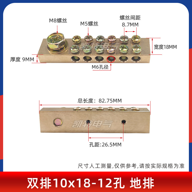 10*18 이중 열 12/16/20/24/30/40/50 홀 제로 접지열 황동 배선 버스 터미널 배포 박스