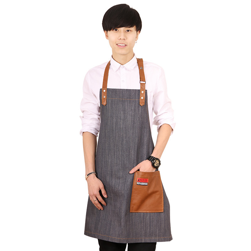 주방 데님 앞치마, 프린팅된 로고가 있는 커피숍, 이발소, 레스토랑, 밀크티 가게, 그림 그리기용 남녀 작업복